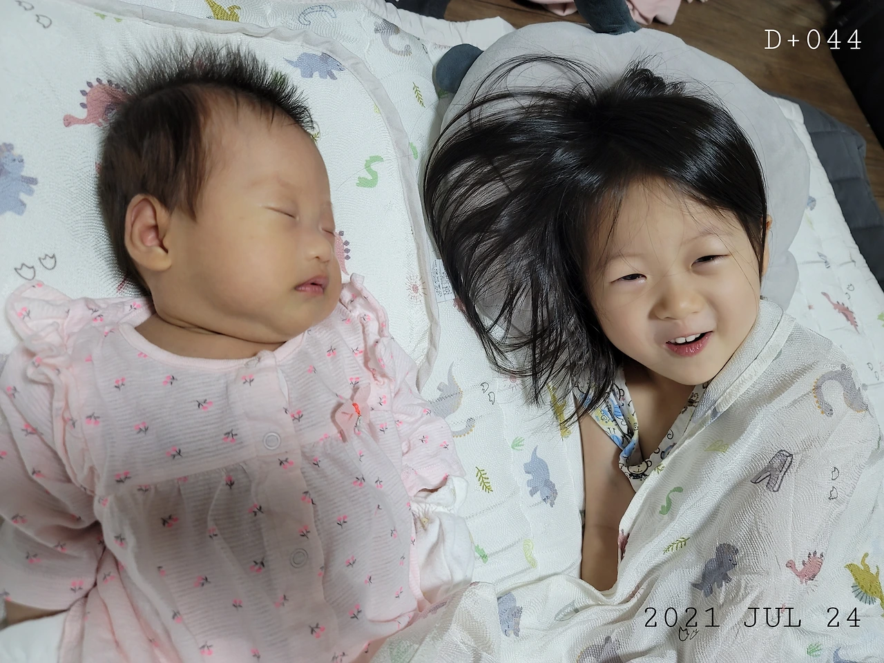 꼭 둘째와 나란히 누워 함께 이불을 덮고 자고 싶어하는 첫째. 동생을 너무 예뻐해줘서 사랑스럽다.....♡
