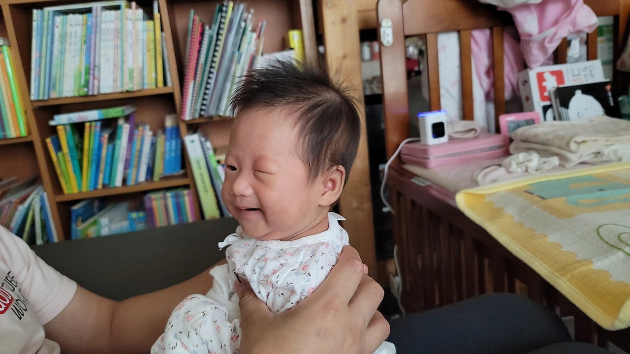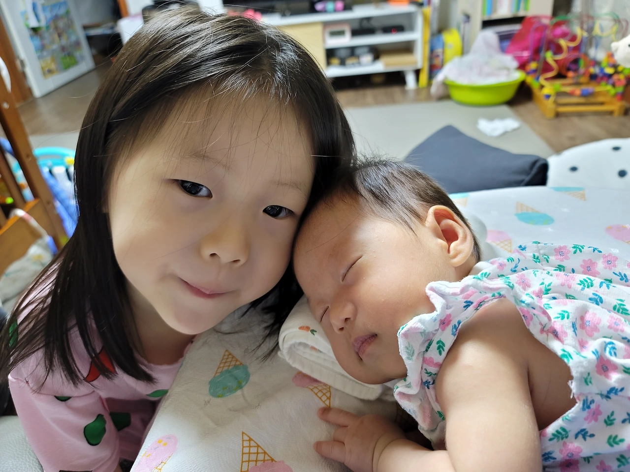 둘째는 아빠가 퇴근하면 눈인사를 하고 언니가 얘기하면 웃어주고 내가 말을 걸면 옹알이로 답을 한다. 둘째는 빠르다더니 그 말을 여실히 실감한다.