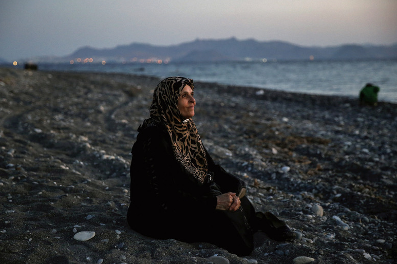 "아름다운 빛으로 가득 찬 코스 섬의 싱그러운 아침, 나이 지긋한 팔레스타인 여인이 해변에 앉아 있었다. 아무 말 없이 차분하게 앉아 있는 그녀를 방해하고 싶지 않아 먼 거리에서 그녀의 사진만 몇 장 찍었다. 후에 알았다. 그녀가 앞을 못 본다는 사실을. 사진작가에게 빛은 전부이기에 그 순간 감정이 북받쳤다." 2015.08.12. ⓒ Yannis Behrakis / Reuters