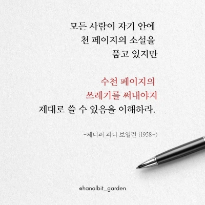 글을 쓰는 작은 행동 하나만 일상에 끼워 넣어도 온통 삶이 바뀌어 버리는 일이 일어난다는 것, 이것 하나만 떠올려 보아도.