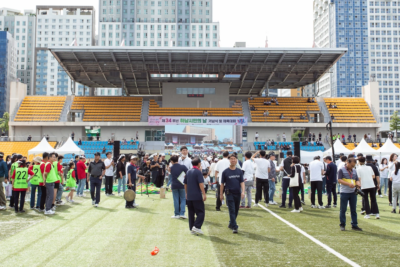 지난 9월 24일, 하남종합운동장에서 제34주년 하남 시민의 날 기념식 및 시민체육대회가 열렸다. 시민 3만여 명이 참석한 가운데 지난 1년간의 시정 운영 성과를 돌아보고 ‘새로운 한강의 기적’을 다짐하는 시간을 첫 순서로, 성화 점화 및 하남 시민의 노래 제창이 이어졌고, 14개동 선수들이 열정과 실력을 겨뤘다.