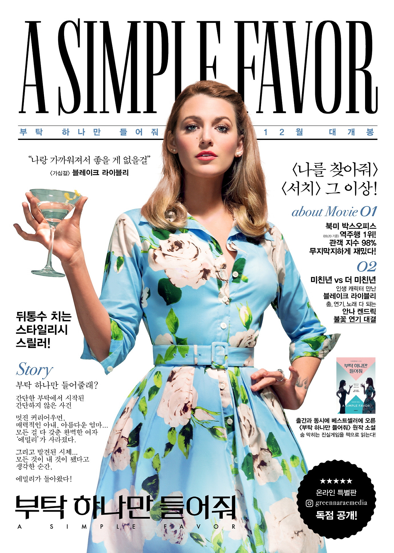 좋아하는 배우 애나 켄드릭이 출연했다는 소식에 주저 없이 선택한 영화, 역시 기대를 저버리지 않았다. 워낙 성공적이었던 베스트셀러를 원작으로 했기에 두말할 것 없는 흥미로운 전개, 역할을 찰떡같이 소화해내는 걸크러시 블레이크 라이블리와 천방지축 애나 켄드릭, 그리고 나의 최애 코믹액션 <스파이>의 폴 페이그 감독이 깨알같이 집어넣은 개그코드까지 어느 하나 버릴 것 없는 영화 <부탁 하나만 들어줘>를 소개한다.