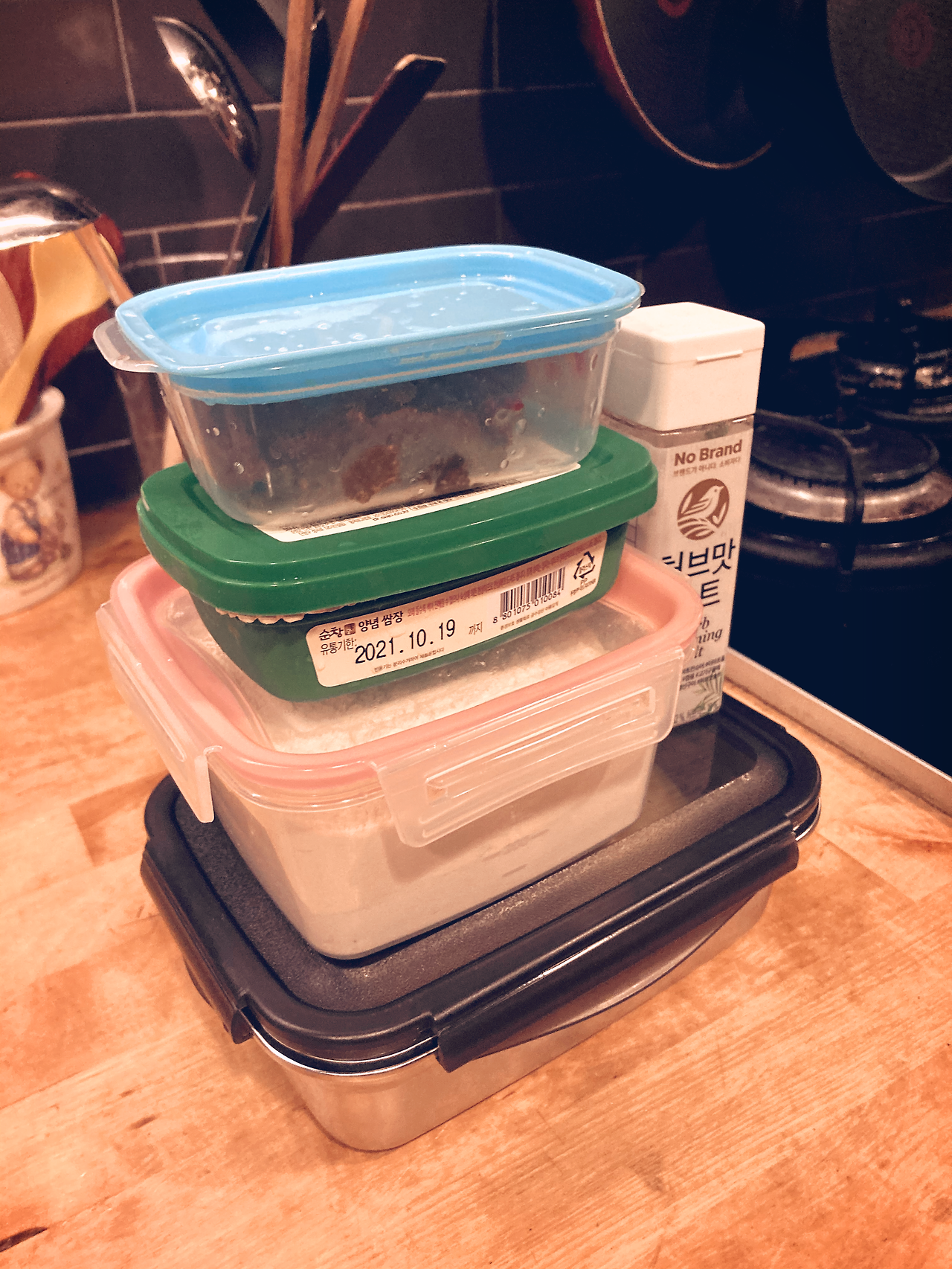 식사 횟수와 인원을 섬세하게 고려한 음식량을 정하고, 구입해야 할 것과 집에서 가져갈 수 있는 것을 구분했다. 우리의 실험대상이 되어준 고마운 팀에게 짐까지 얹어줄 순 없으니 준비물은 우리 선에서 끝내 본다. 대용량으로만 파는 감자나 양파, 새 것으로 사면 분명히 남을 온갖 양념을 챙겼다. 부침가루를 챙겼더니 마약 밀수하는 기분이 들지만 뿌듯함이 넘실거린다.
