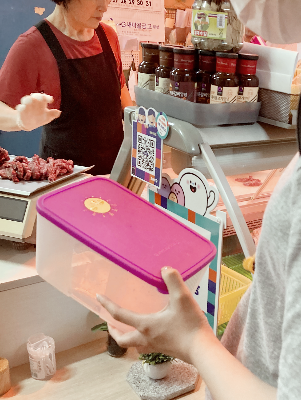 드디어 대망의 MT 당일, 빠질 수 없는 첫 관문인 장보기 시간이 다가왔다. 다회용기를 두둑히 담은 에코백을 들고나가는 EOTD팀에게 전운이 감돈다. 너무나 당연하고 편리한 포장재를 이제 거절해야만 하다니, 의아한 눈빛을 받지는 않을까? 비위생적이라고 생각하진 않을까? 시작도 전에 괜한 걱정으로 말수가 적어진 나. 들고 가는 건 빈 용기인데 왜 이렇게 무겁게 느껴지지.