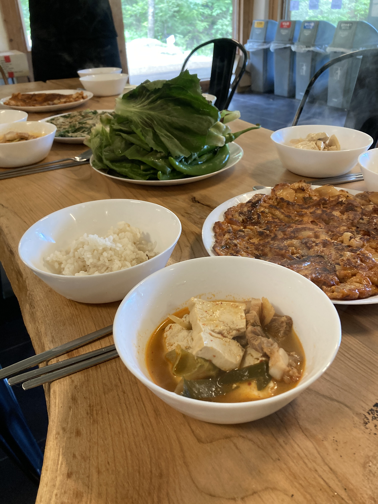 주루마블로 한껏 친근해진 이튿날 아침, MT에서 나온 쓰레기를 정리하며 아침을 준비한다. 음식물 쓰레기를 줄이기 위해 남은 식재료를 때려넣는다. 덕분에 풍성한 아침식사! 남은 과일과 부침개는 맛있어서 다회용기에 담았다. 집 가는 길 입이 심심하진 않겠군. 여러분 우리 다회용기가 이렇게 또 해냅니다!