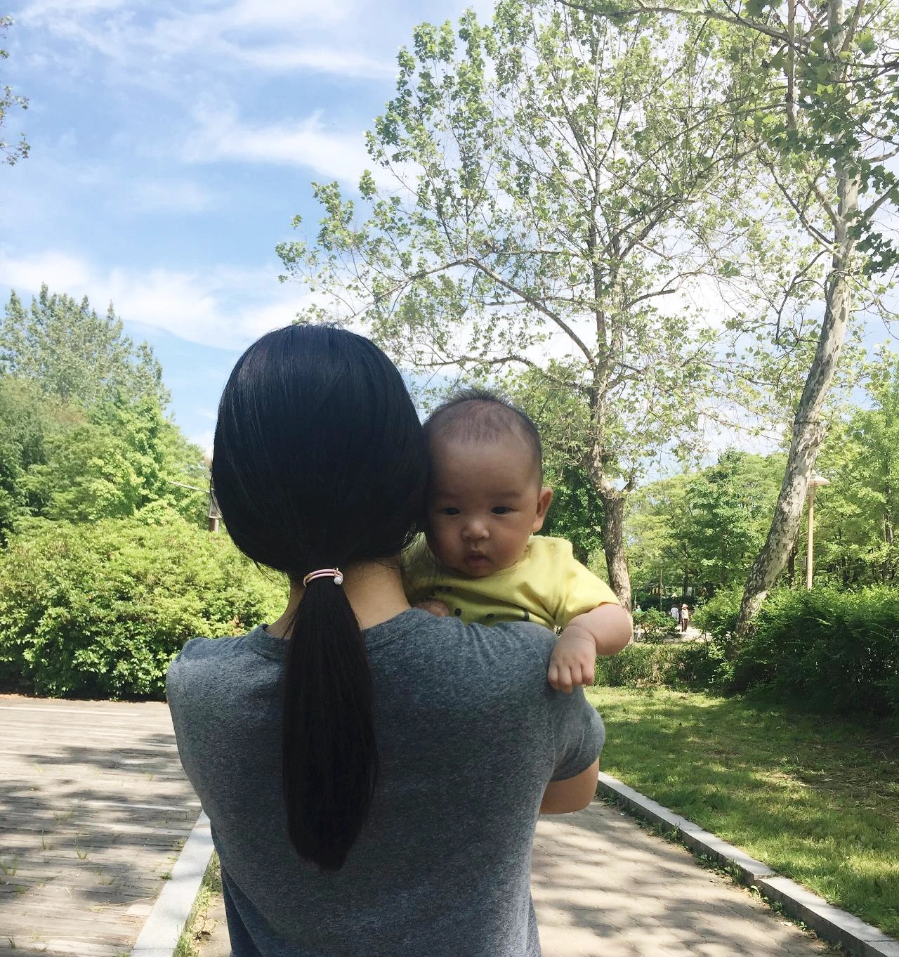 한 바퀴를 돌며 강아지들 구경한 후 어린이대공원을 산책했다. 나뭇가지에 빼곡히 달려있는 나뭇잎 사이로 비치는 햇살이 반짝반짝 신기한지 복숭이는 연신 하늘만 쳐다봤다. 청명한 하늘, 푸른 나무.. 그리고 우리 세 가족. 행복이 이 안에 있었다.
