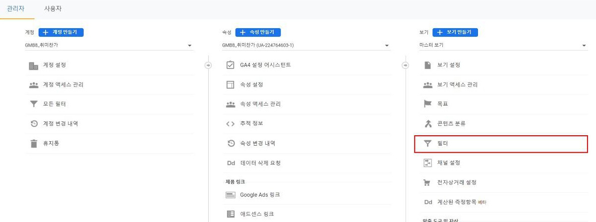 GA 보기-필터