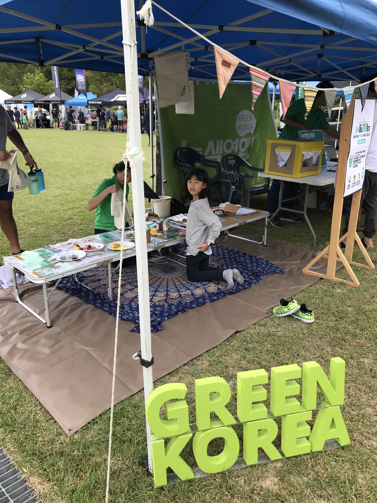 아이는 이때 홍보부스에 넘나들며 강아지랑도 놀고 즐겁게 시간을 보냈다