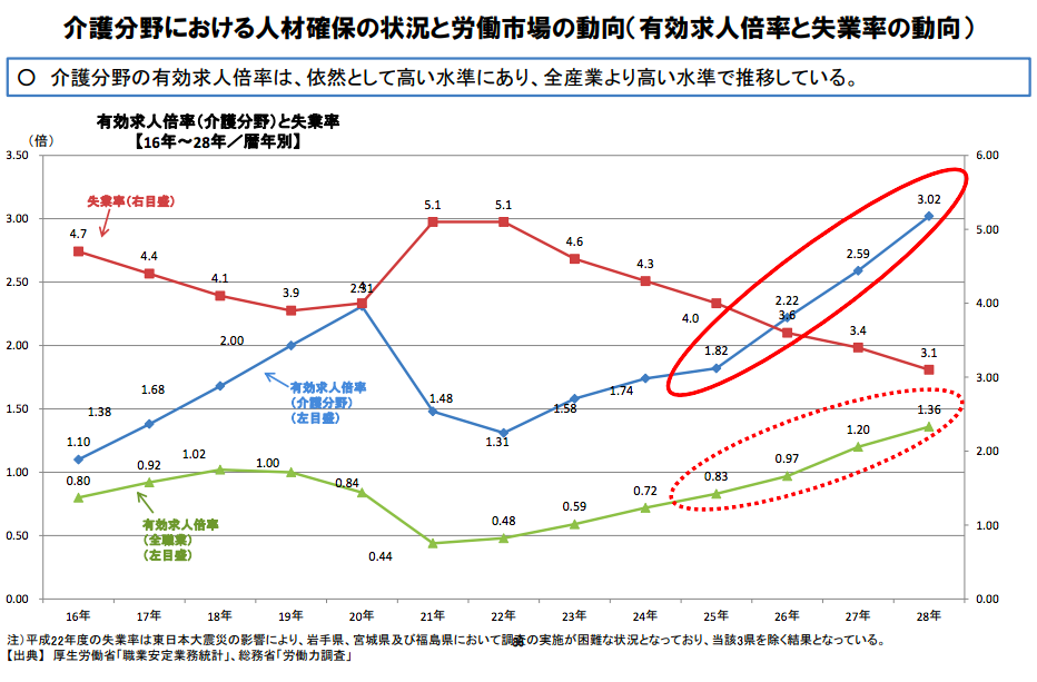 위 자료는 후생노동성의 개호인재 대응과 관련한 보고서의 현황자료이다.