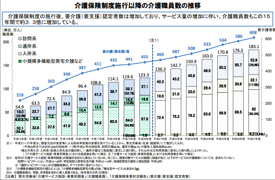 15년 만에 3.3배의 개호 인력이 필요하게 되었으며,