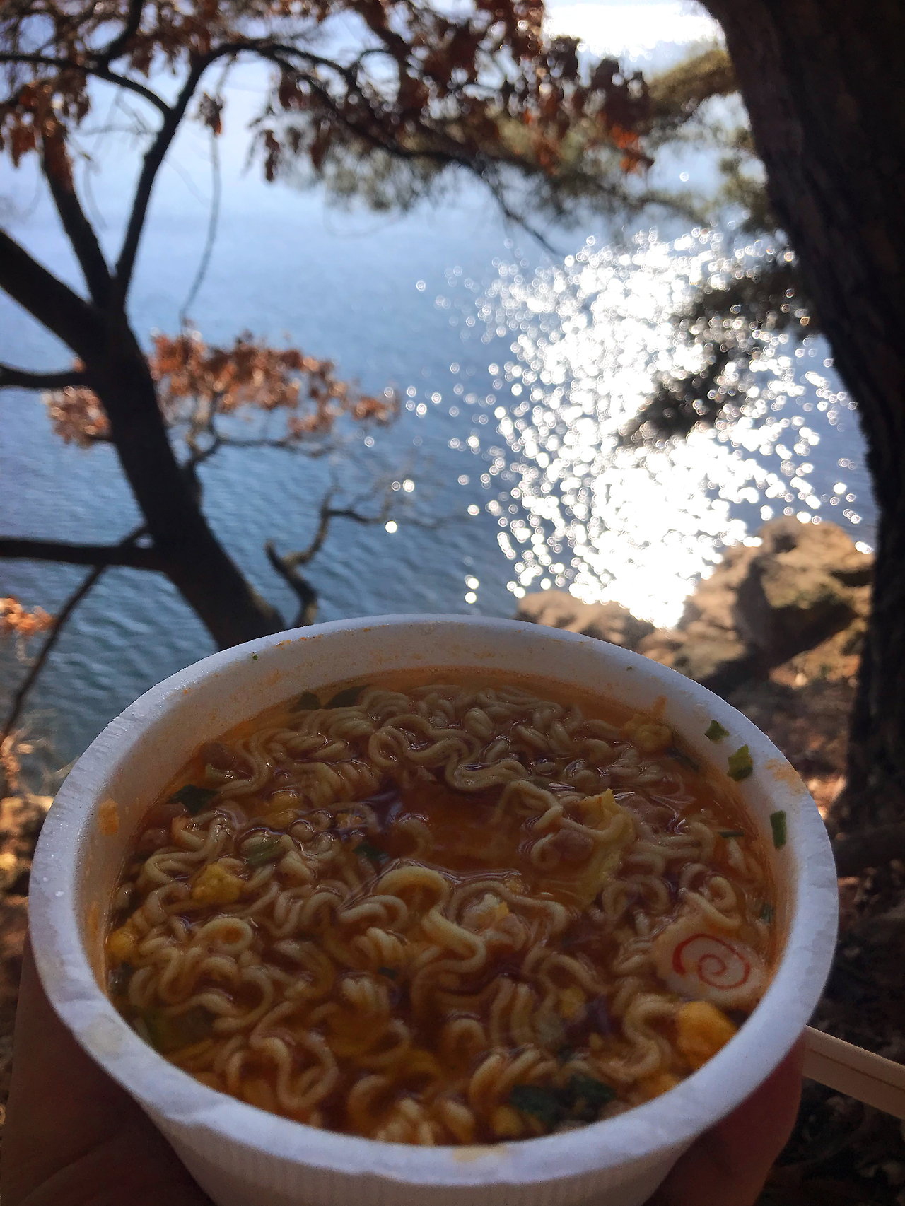 경치 좋은 곳에 백패킹을 하는 사람들이 있는데...