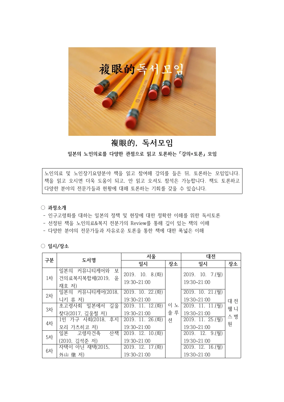 노인의료, 장기요양관련 독서모임을 서울과 대전에서 열려고 합니다. 이제 의료만으로, 복지만으로 지역에서 고객의 수요를 맞추기엔 한계가 있습니다.