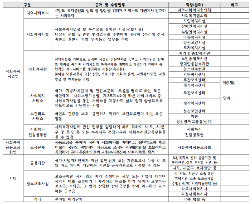 사회복지 일자리의 종류와 기준