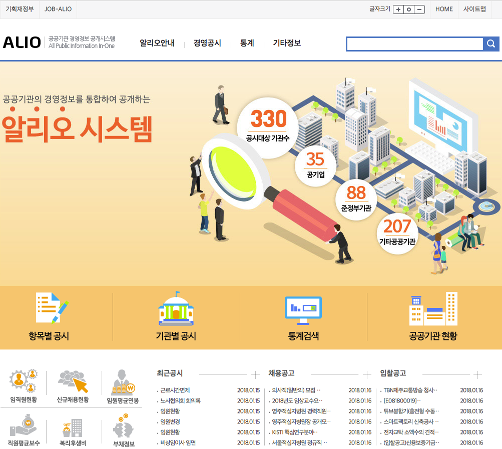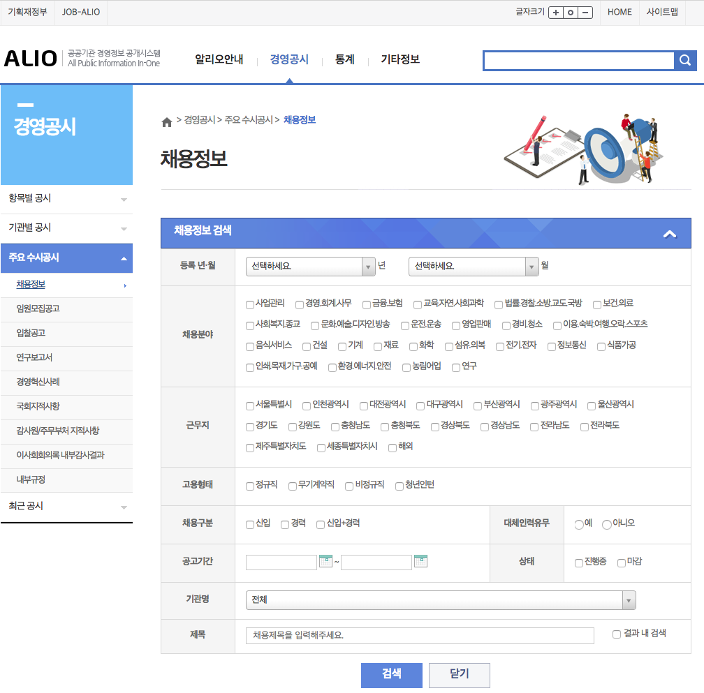 이와 같은 공공기관의 채용에 대한 정보는 공공기관 알리오를 통해서 알 수 있다.