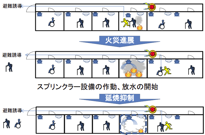 2013년 나가사키시의 치매고령자그룹홈에서 화재가 발생하여 5명이 사망하고 7명의 사상자가 발생하였다. 이 사고로 인해 스프링클러에 대한 설치의무가 더욱 강화되었다.