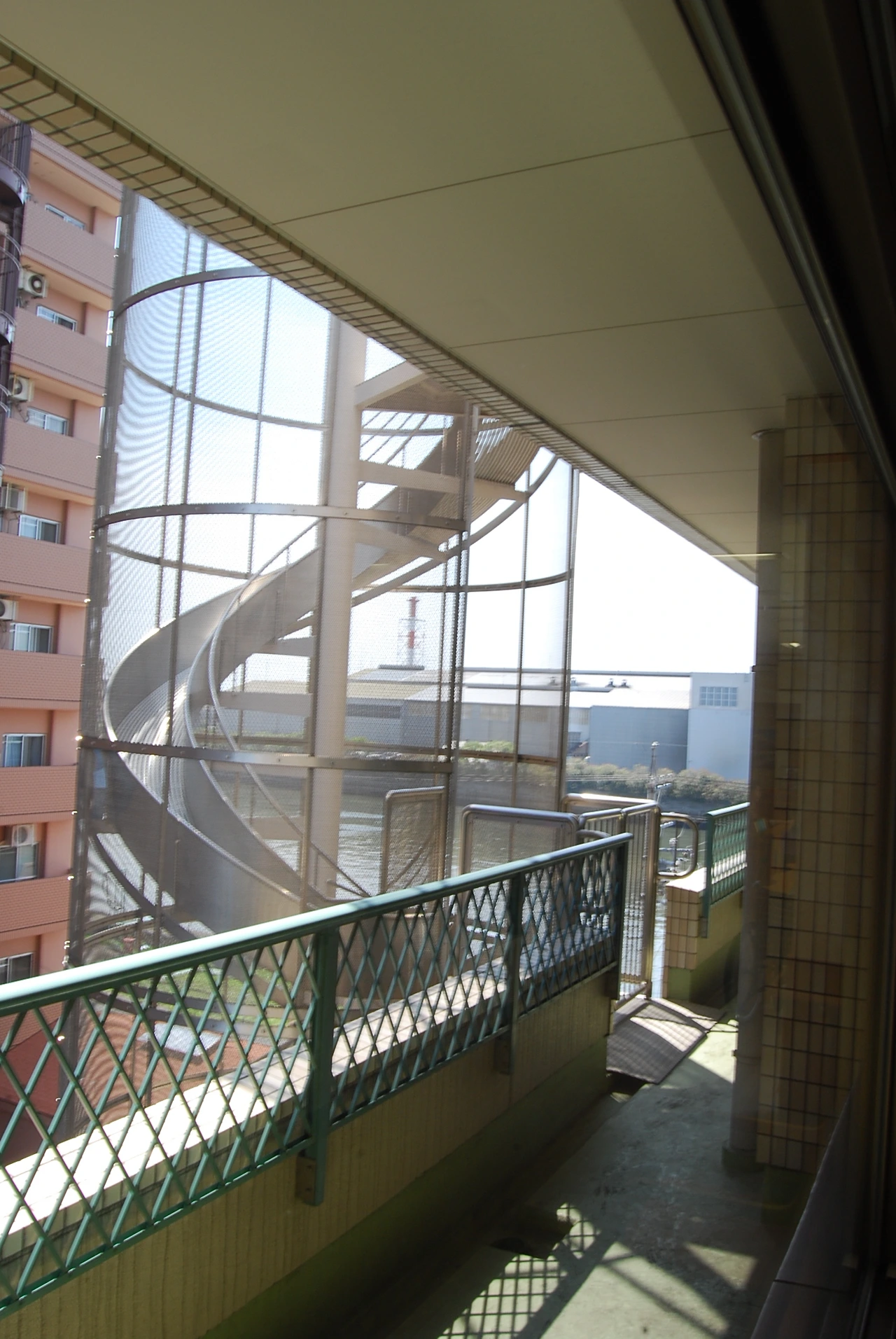 탈출로는 불이 타지 않는 소재로 되어 있어서 우선 테라스에 나오면 불이 나도 불로 인한 사상자도 발생되지 않게 된다.