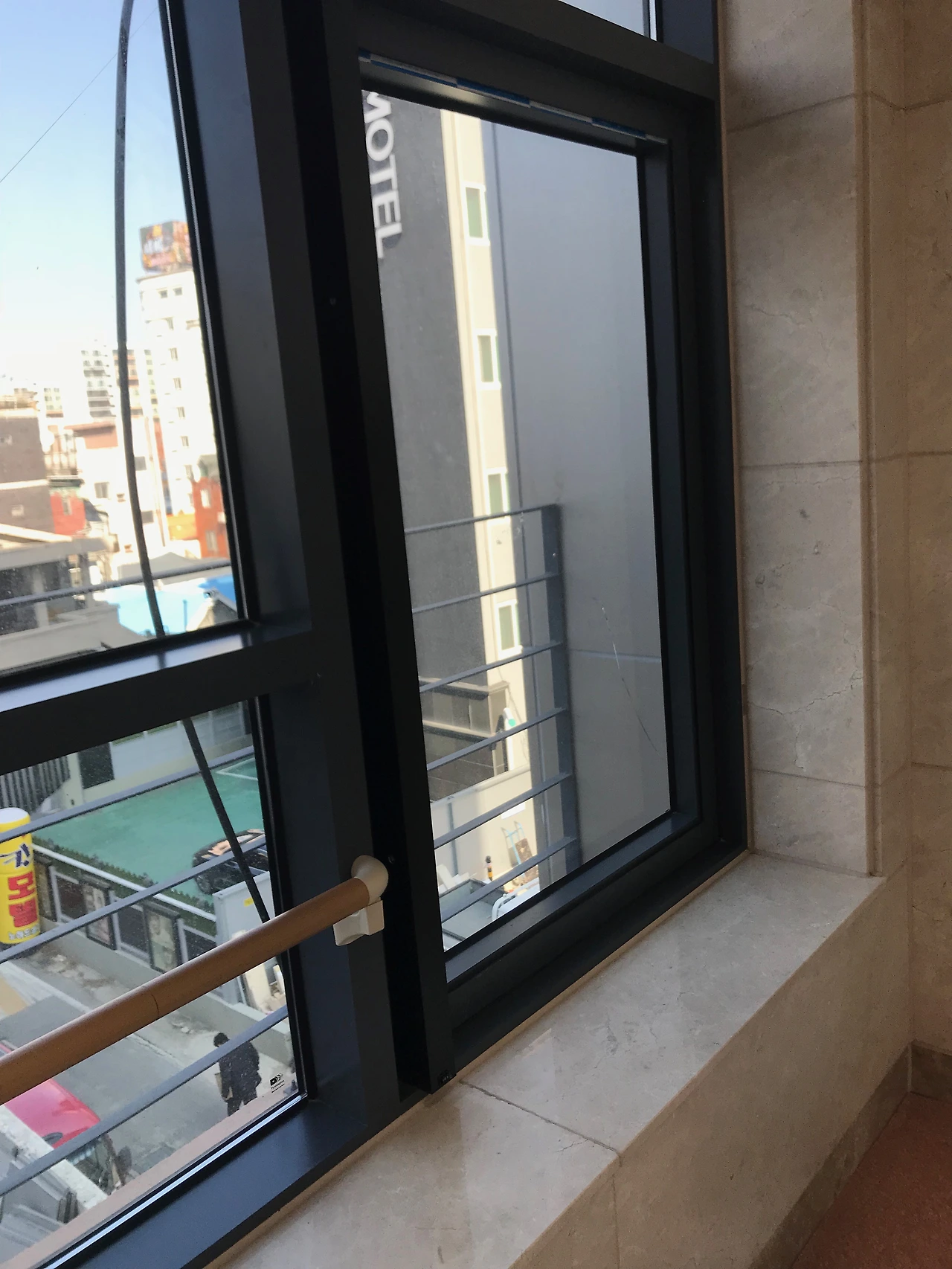 그런데 이 병원의 창문은 중간에 턱이 있으며 벽면의 반을 창문이 있는데 그 중 1/3이 문을 열을 수 있는 창문이고 그나마 건강한 성인이 간신히 나갈 수 있는 정도의 크기였다.