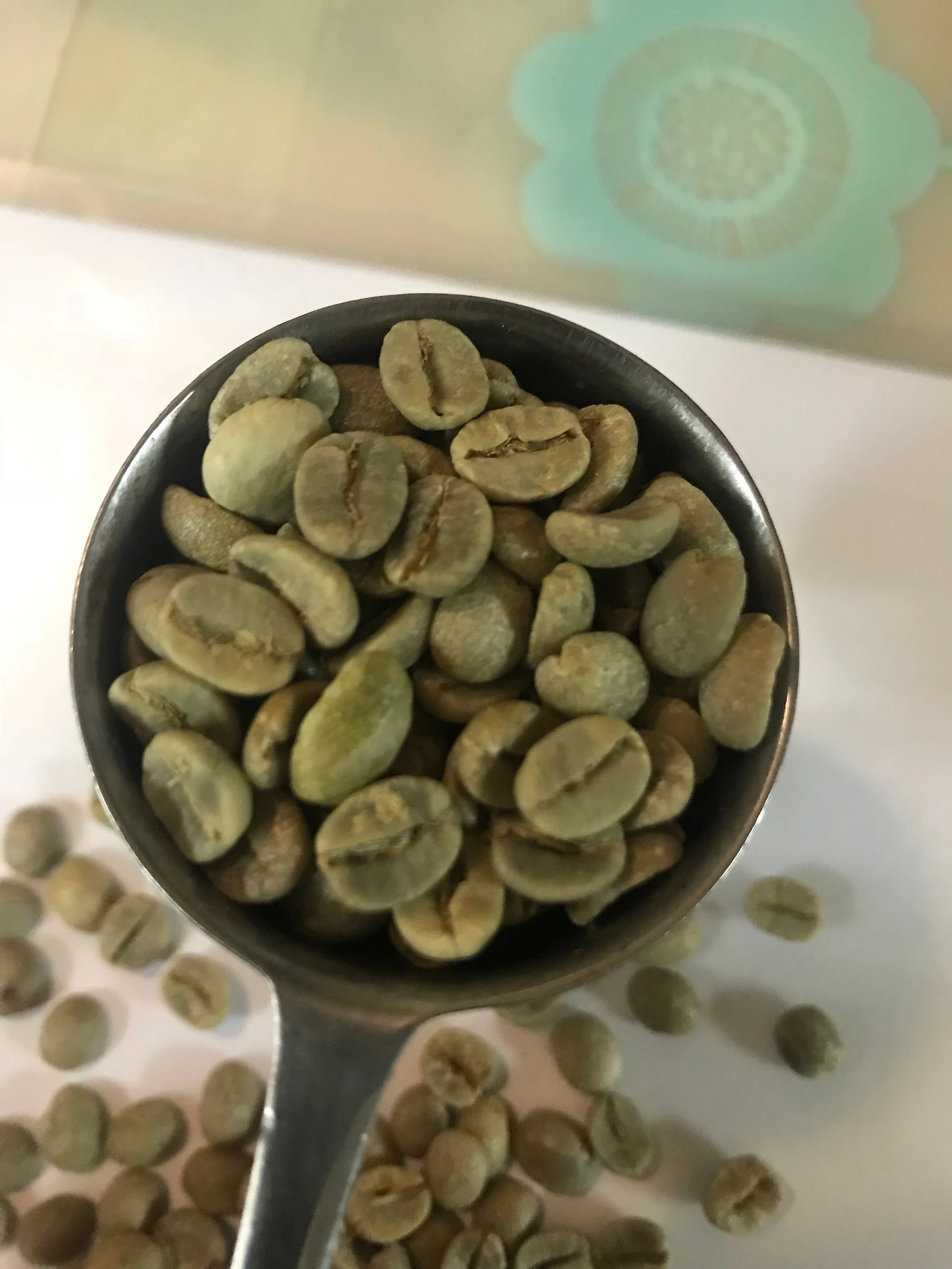 결점이 있는 생두를 분리해서 따로 정리했습니다. 결점두가 얼마나 맛없는지 동일한 조건에서 비교해보려고요. 그리곤 로스팅할 양을 정했습니다. 두 숟가락을 로스팅하면 몇 숟가락으로 늘을까요? ㅎㅎㅎ