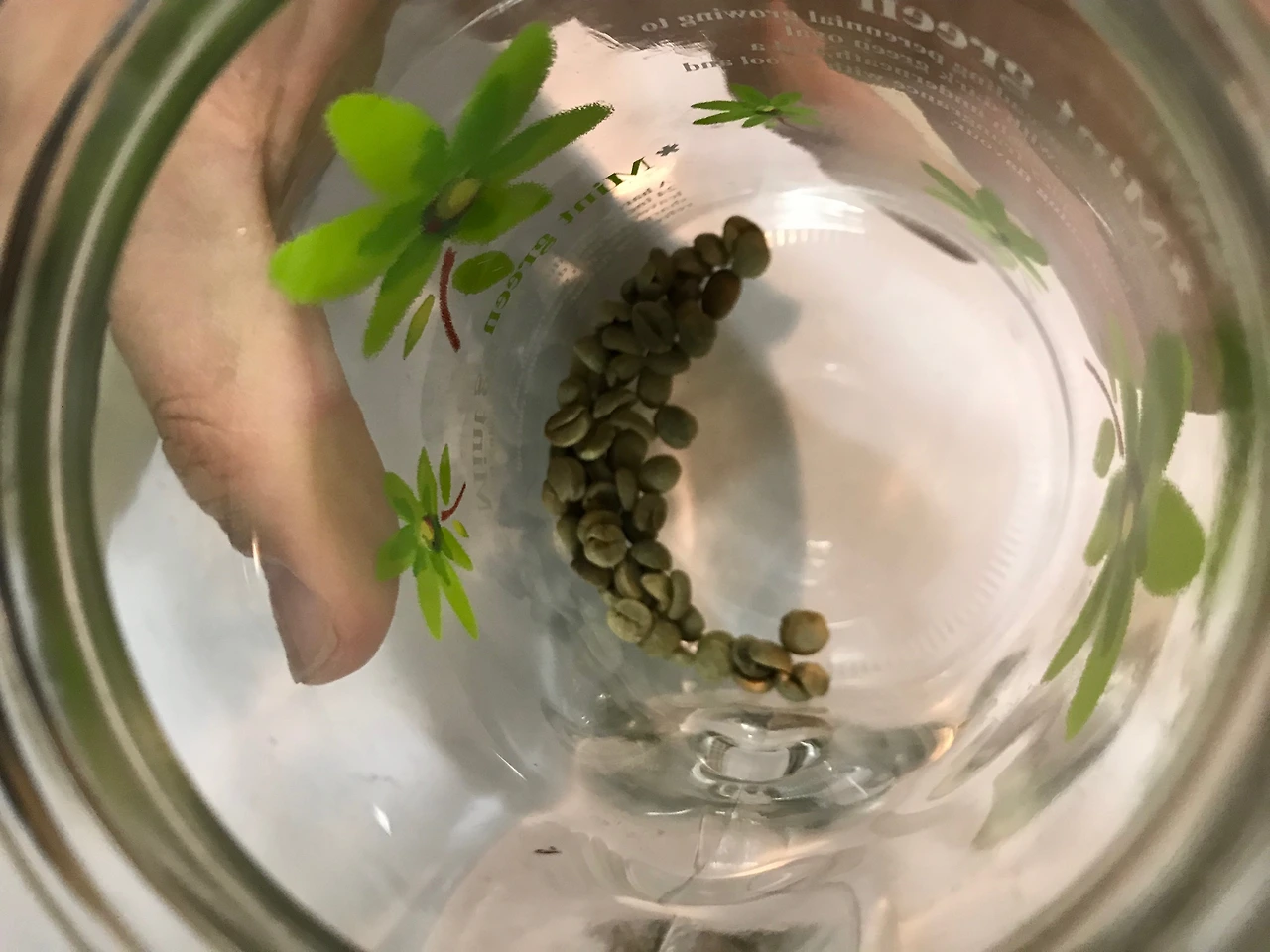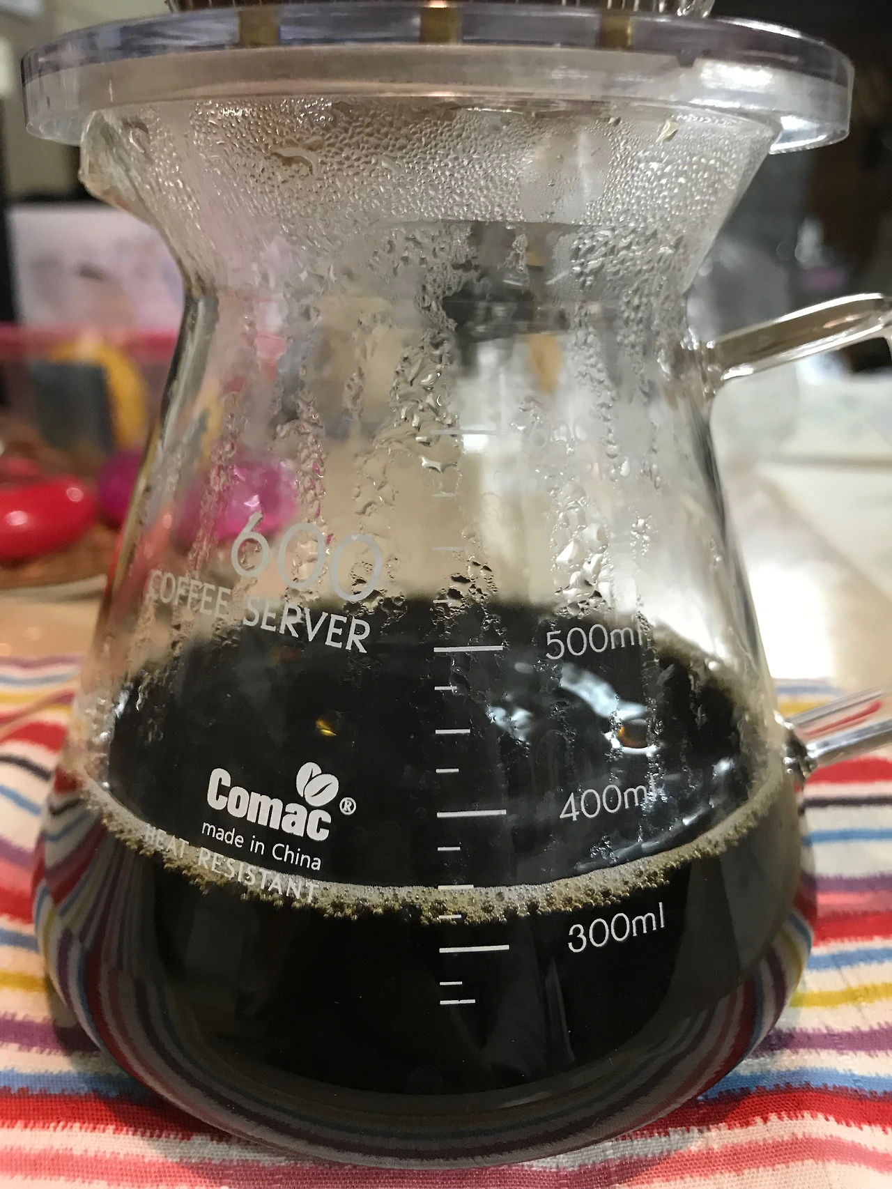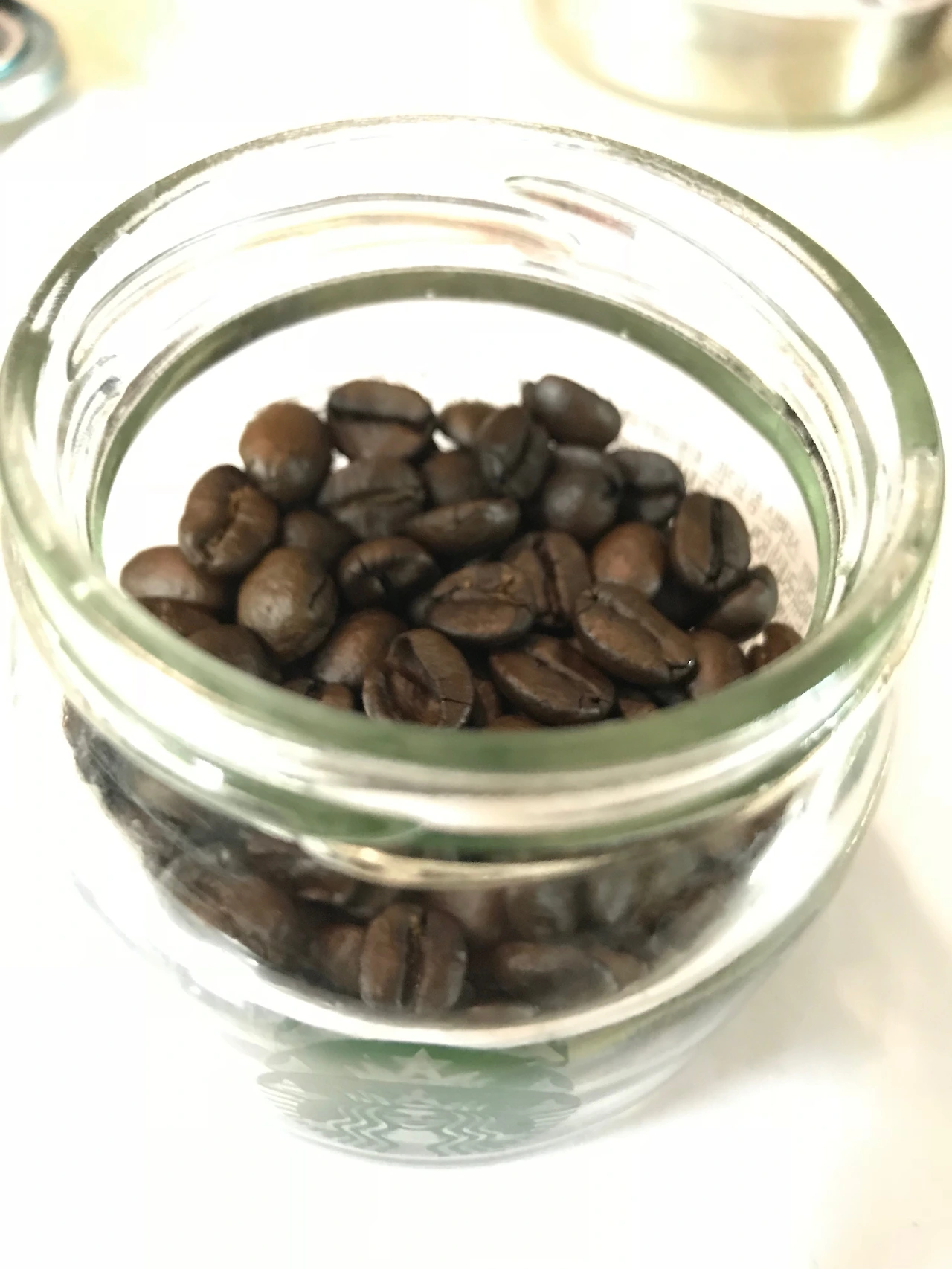 쿨링을 마치고 나니 생각보다 너무 검게는 로스팅된 건 아니라는 생각이 들었습니다. 그래서 일부는 스타벅스 요구르트병에 담아서 보관하고, 일부는 바로 갈아서 핸드드롭하기로 했어요. 원두도 숨을 돌릴 시간을 줘야 하지만... 궁금해 못 참겠어서...