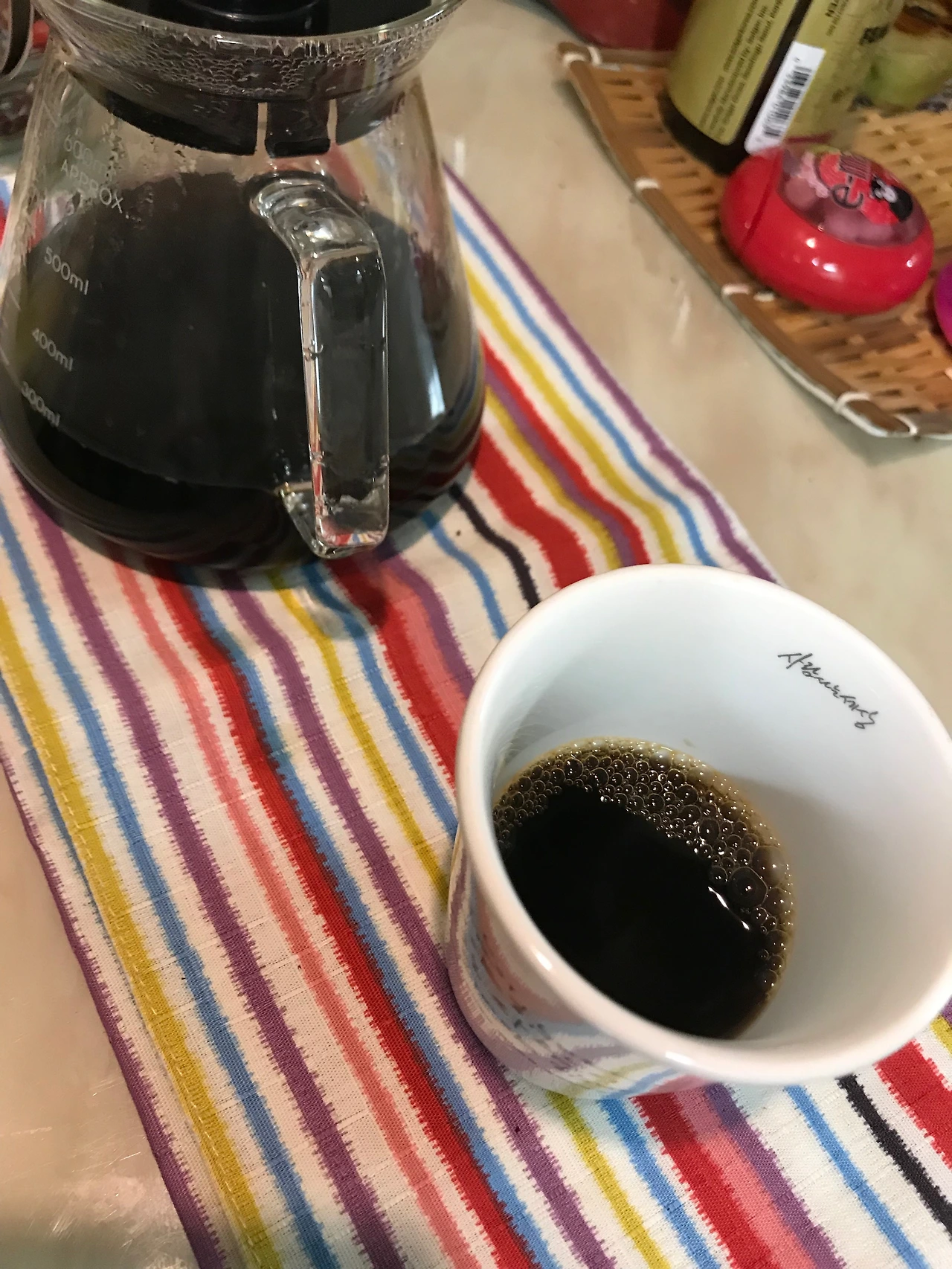 잘게 분쇄해서 진하게 내려봤습니다. 막 로스팅을 해서 그런지 기름이 장난 아닌데요... 이 기름이 바로 아로마의 원천... 너무 급하게 마셔서 거름종이를 적시는 것도 잊고 그냥 내려봤네요... ㅎㅎㅎ