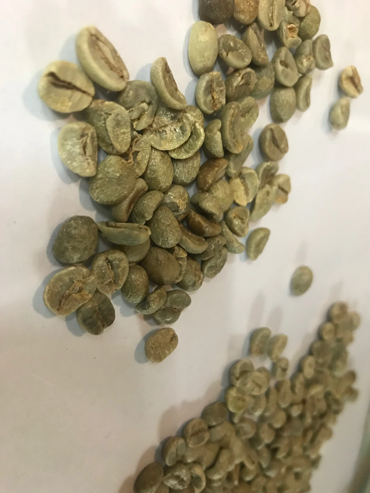 우선 생두를 열어보니 비릿한 향기도 나고... 뭔가 생콩이라는 느낌이 확~ 들었습니다. 육안으로 봐도 콩의 상태가 좋지 않은 것이 많이 보였어요. 그래서 결점두를 선별해 보았습니다.