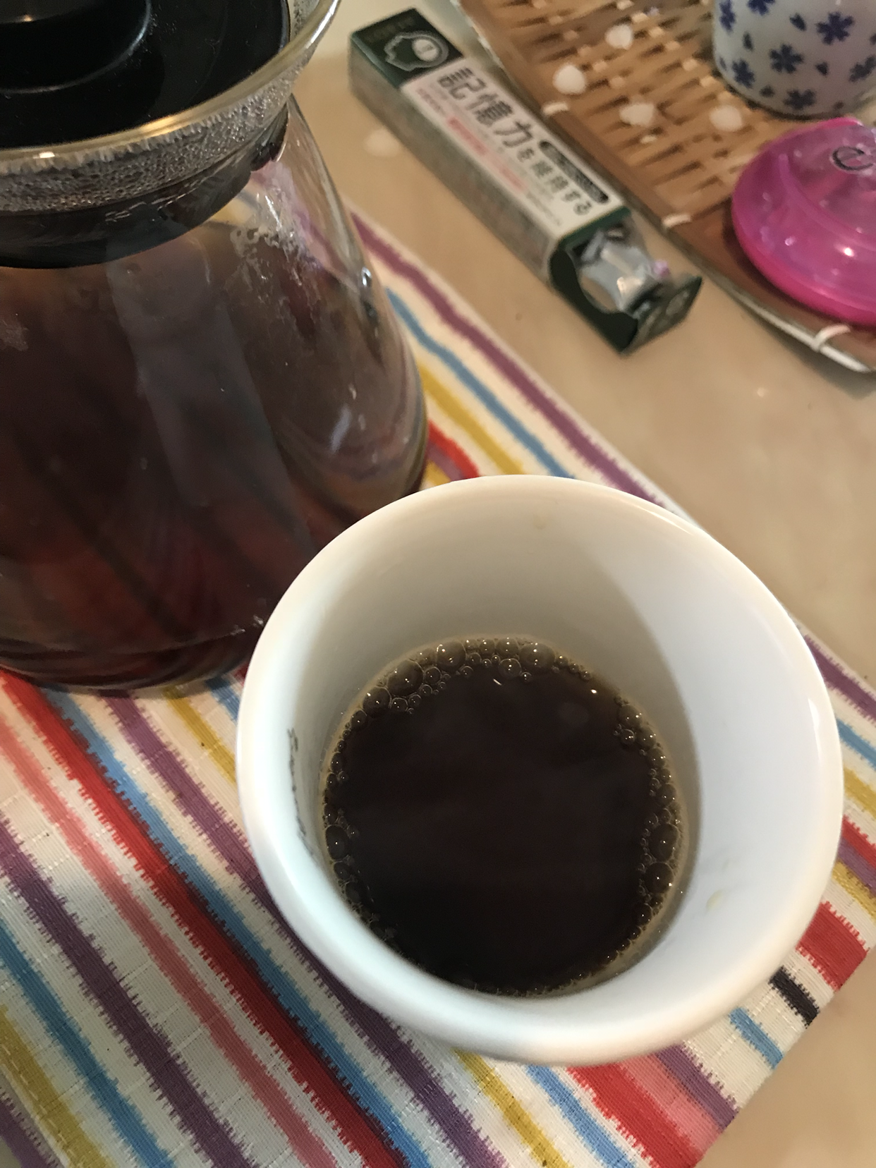 코스트코 생수로, 굵게 갈아서 미리 서버랑도 물로 데워 둔 상태에서 내려보았습니다. 입자가 굵으니 경쾌하게 드롭핑이 되었어요.
