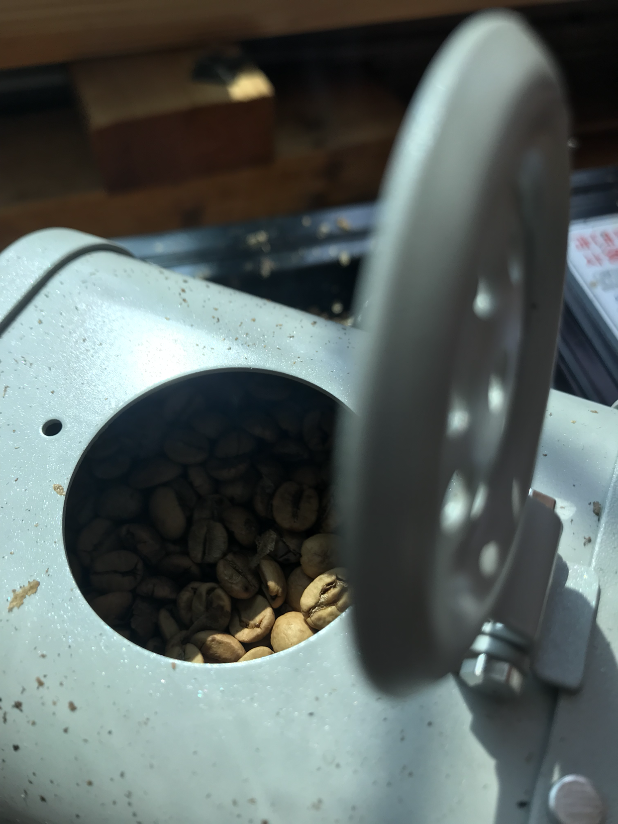 오늘은 세숫가락 올렸어요. 오늘은 미리 로스터를 달군 후 투하 했는데요. 다음엔 A4용지에 미리 준비 후 살짝 말아서 한방에 넣으먄 좋겠다고 생각했어요.