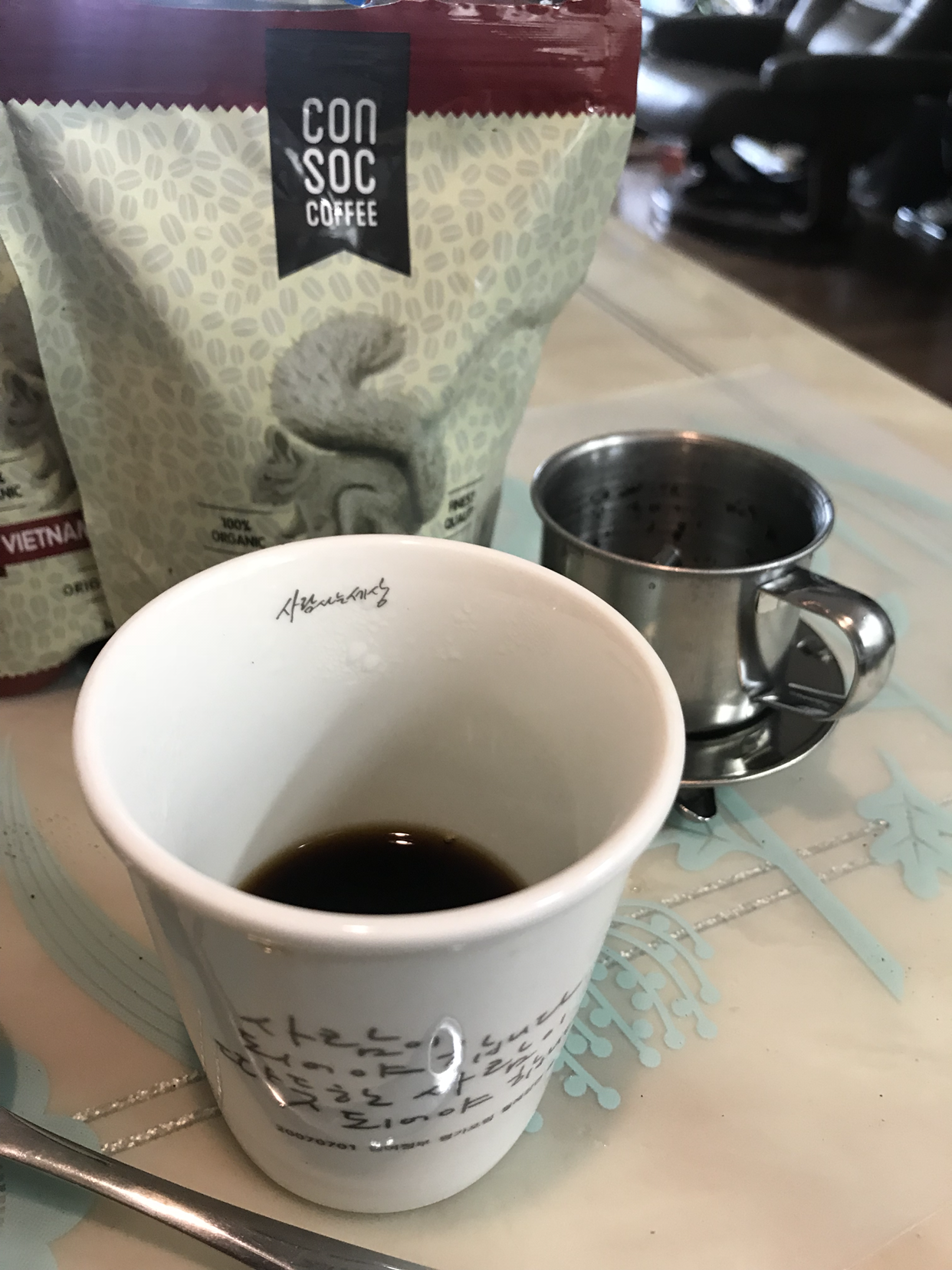 원두로서 기존에 베트남커피에 갖고 있던 나쁜 인상은 없앨 수 있었다. 그렇다고 매우 매우 매력적이라고 볼 수는 없었다. 따로 사서 먹고싶진 않은...