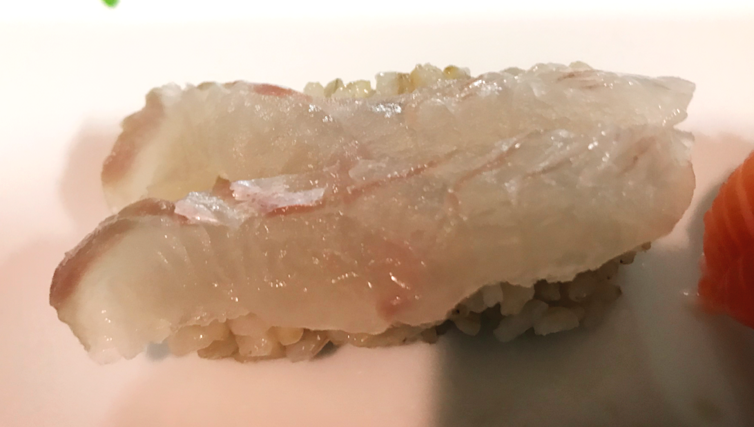 그럼 이젠 살짝 눌러서 握り(nigiri, 쥐어)해서 회를 살짝 올리면 Nigiri SUSHI가 완성됩니다.