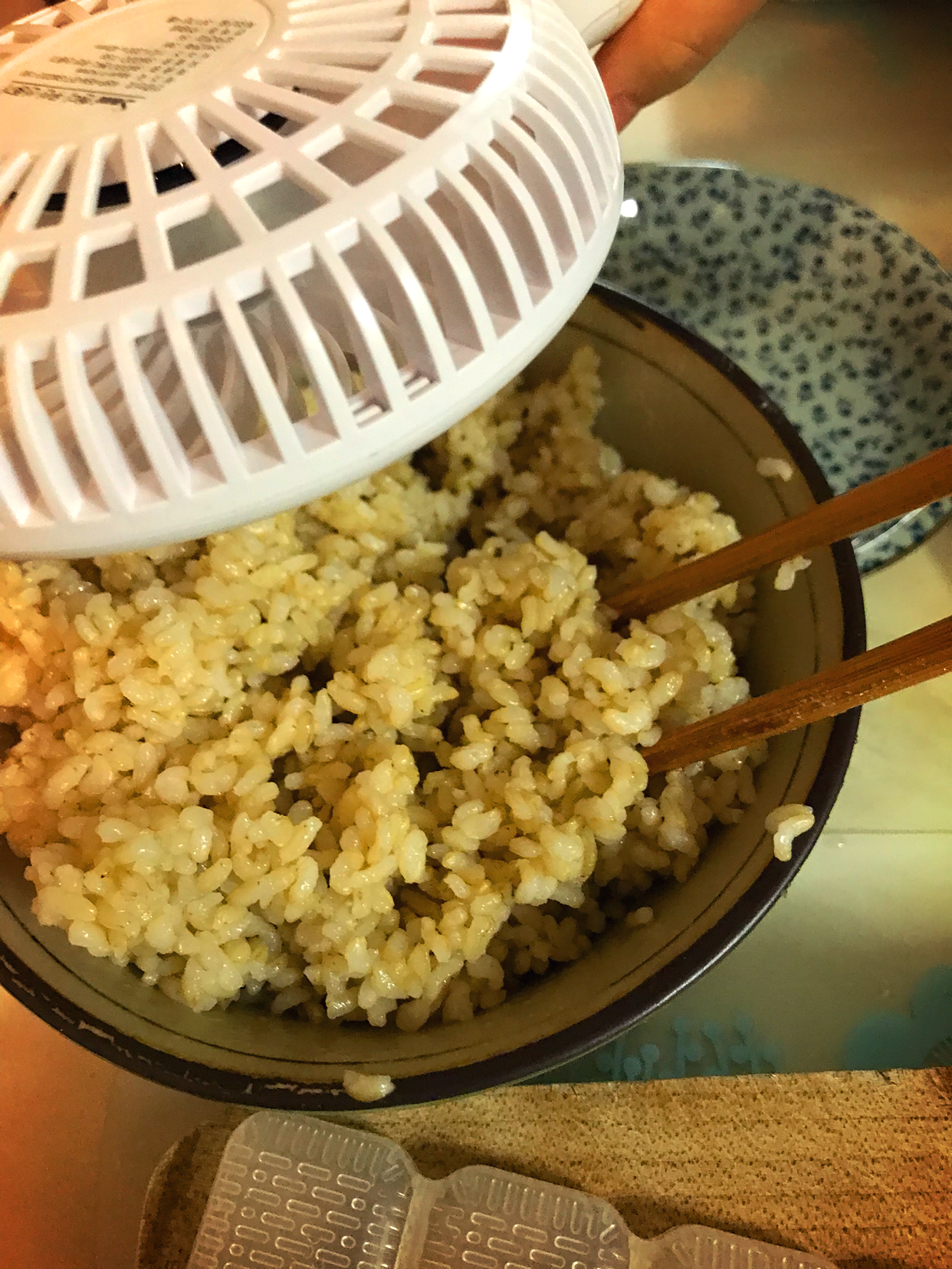 밥알이 나무 뭉치지 않게 잘 섞은 뒤 선풍기로 밥을 식혀봅니다. 밥이 너무 뜨거우면 초밥을 만들기 힘들기도 하고, 겉은 차갑고 속은 따뜻한 밥알이 가장 맛있는 초밥 밥이라도 생각합니다.