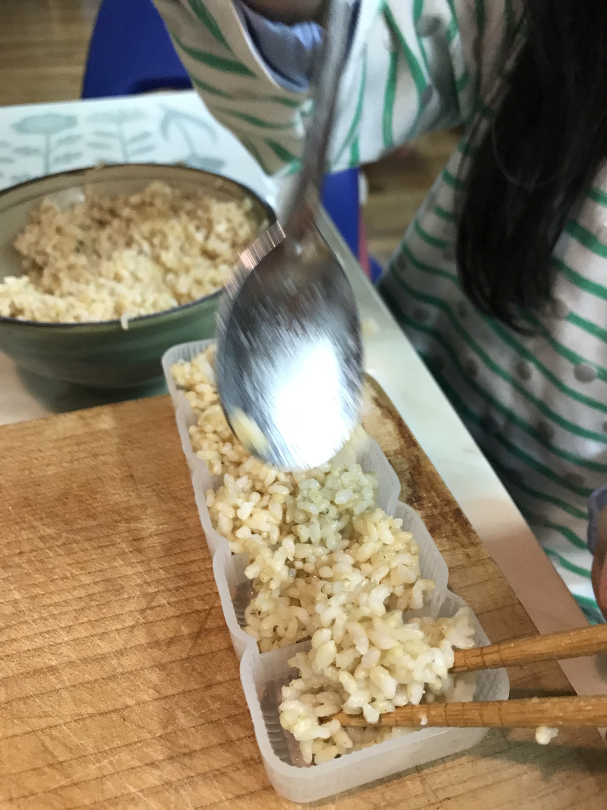 초밥 틀에 꼭꼭 눌러줍니다.