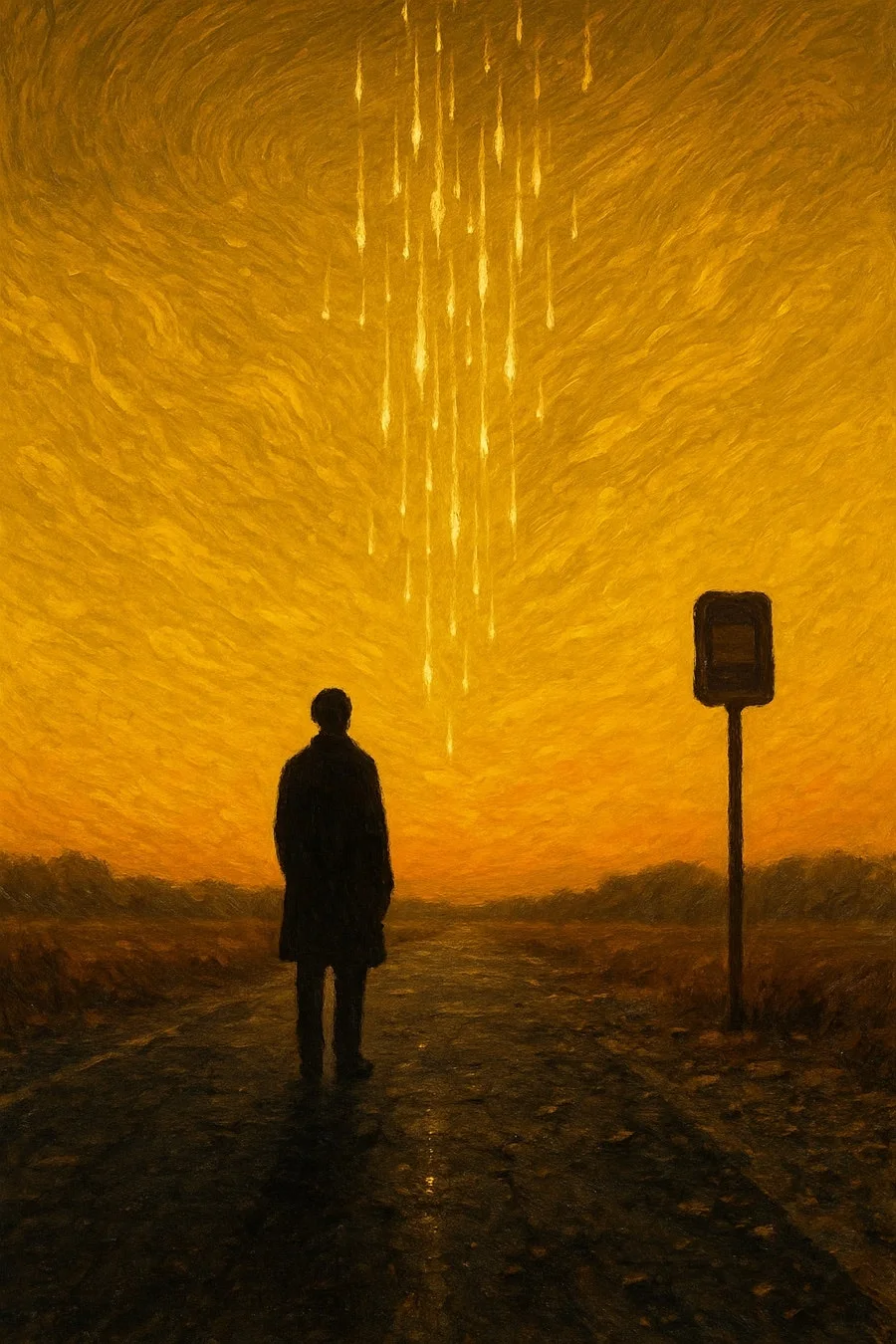 땅 위에 서 있는 나는 그저 노란 하늘을 바라볼 뿐이네
