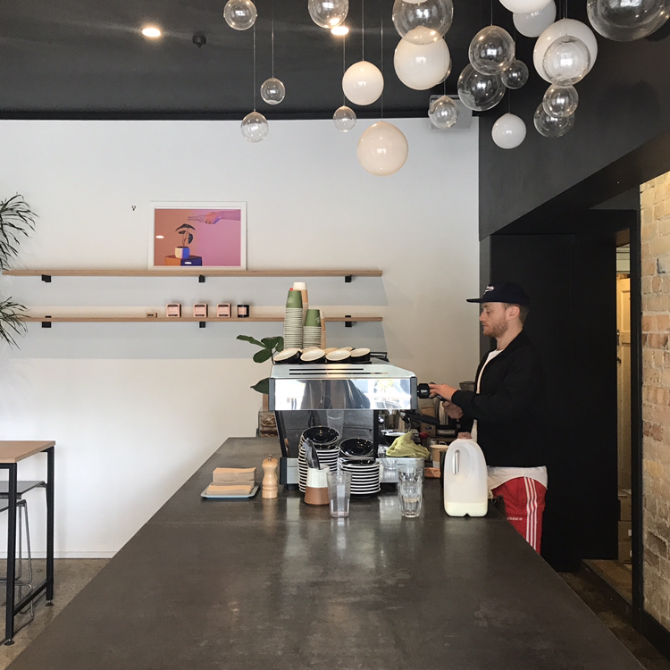 크지 않은 내부는 동글동글한 풍선 같은 전구가 밝혀주고 있다. 가운데에 위치한 길쭉하고 깔끔한 테이블 위에는 바리스타의 손놀림을 볼 수 있는 커피머신 하나가 놓여 있다.