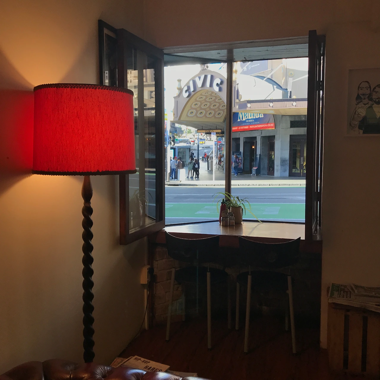 오클랜드 메인 스트릿에 작게 위치하고 있는 카페, 빈티지스러움이 가득 베인 이 카페는 독서를 하기에도 시티의 모습을 눈에 담고 여유를 갖기에도 제격인 곳이다. 다양한 액자들과 선반 위의 책들이 한쪽 벽에 꽉 차있는 내부는 빈티지스러움이 가득하다.