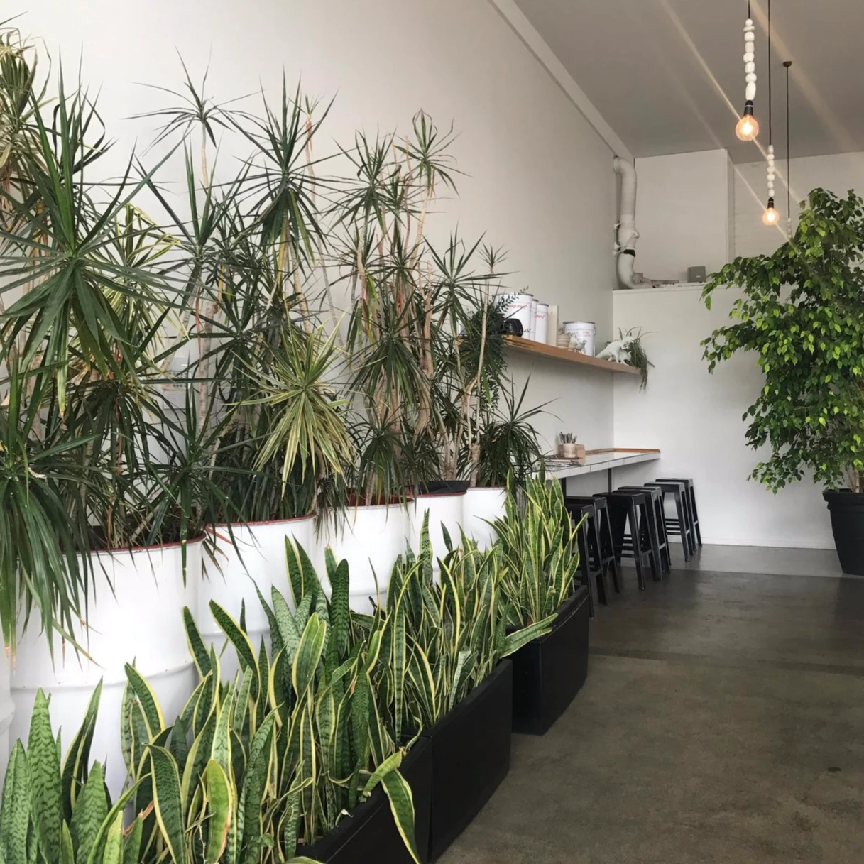 화이트와 블루 컬러로 시원하고 깔끔한 느낌을 주는 내부 곳곳에 자리한 깜찍한 식물들이 귀엽다.