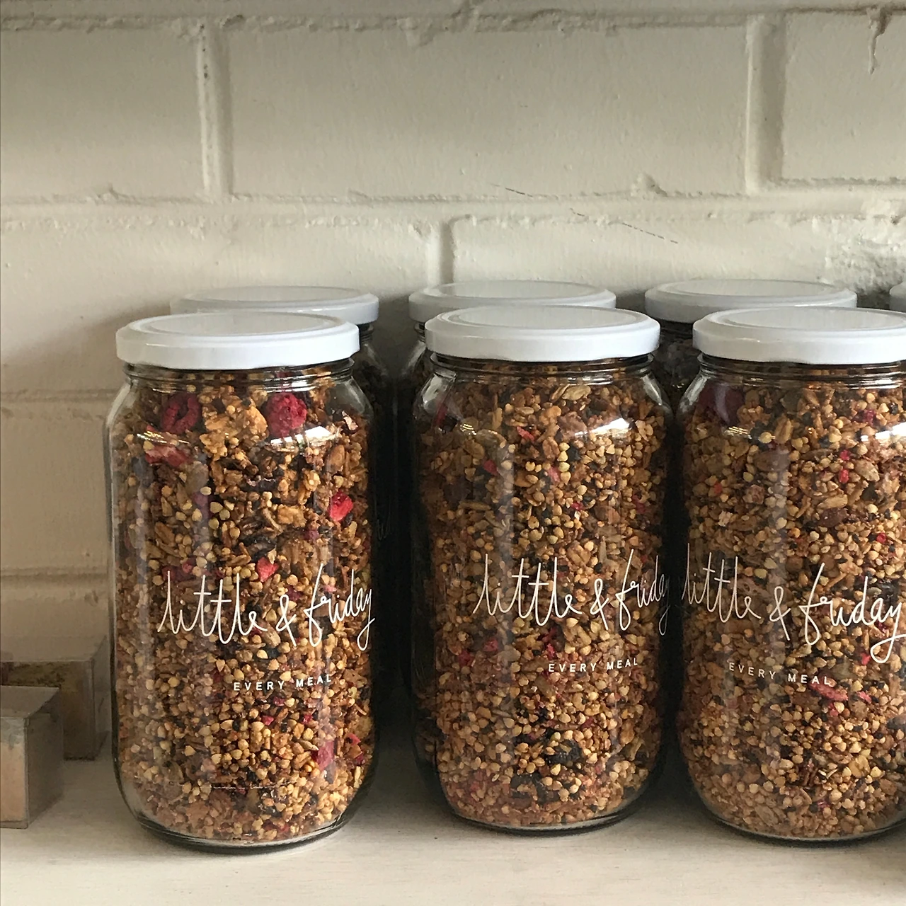 Little & Friday는 로고가 적힌 예쁜 유리병에 '뮤슬리'나, '작은 쿠기'를 담아 판매하고 있기도 했다.
