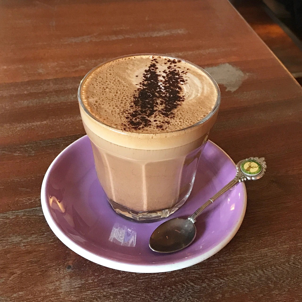 이 날 나는 초콜릿 파우더가 올라가는 모카를 주문했다. 예쁜 티 스푼과 함께 나온 모카.
