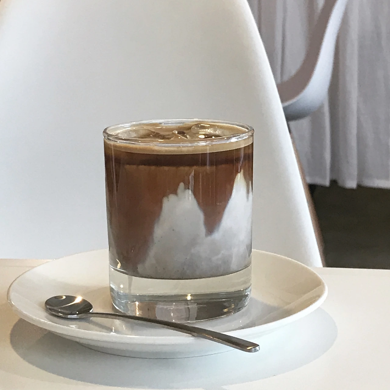 플랫화이트는 라테에 들어가는 우유의 양보다 적어 원두 본연의 맛을 볼 수 있는 진한 커피이지만, 우리나라에서는 벨벳 밀크폼 없이 차가운 아이스커피로 즐기는 형태로 발전하였다. 하얀 우유 아래로 천천히 흘러내리는 에스프레소의 그러데이션은 충분히 아름답다만, 원조 플랫화이트의 매력은 뜨거운 커피 한 잔에서 진하게 느껴볼 수 있다.
