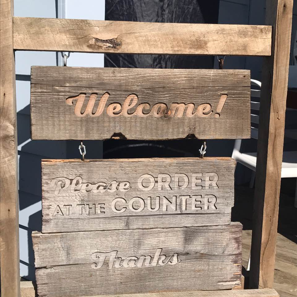 나무로 만들어진 간판이 카페를 잘 찾아왔음을 반갑게 일러주는 듯하다.
