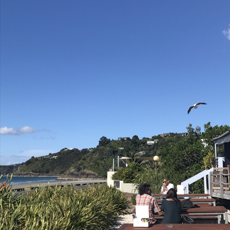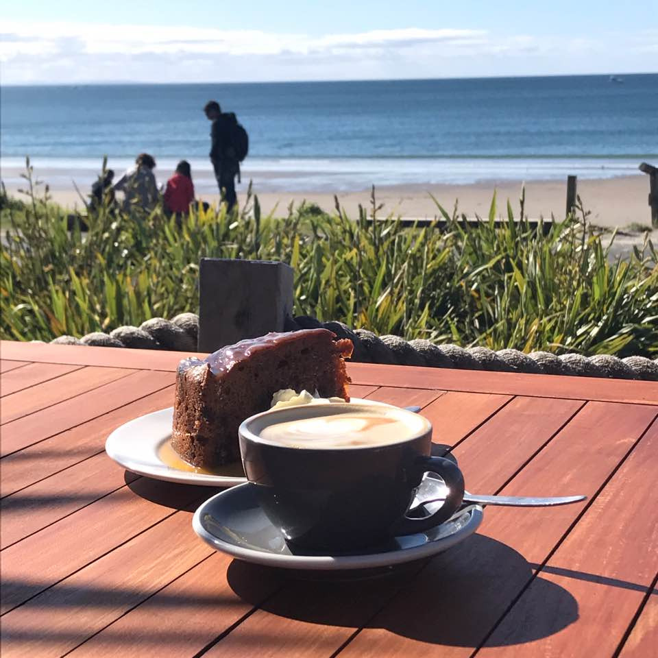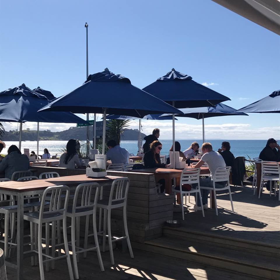 오클랜드에서 여행을 떠나기 좋은 와이헤케, 와이헤케에 있는 팜 비치 바로 앞에 위치한 카페이다. 커피가 당기는데, 바다도 당긴다. 하면 주저하지 말고 이 곳을 목적지로 삼자.
