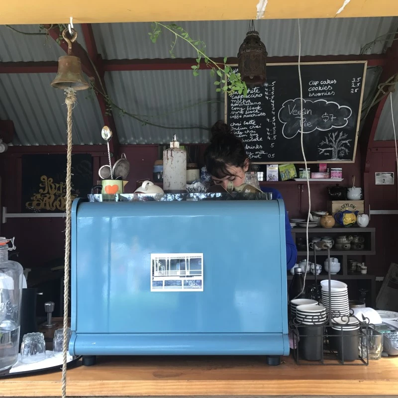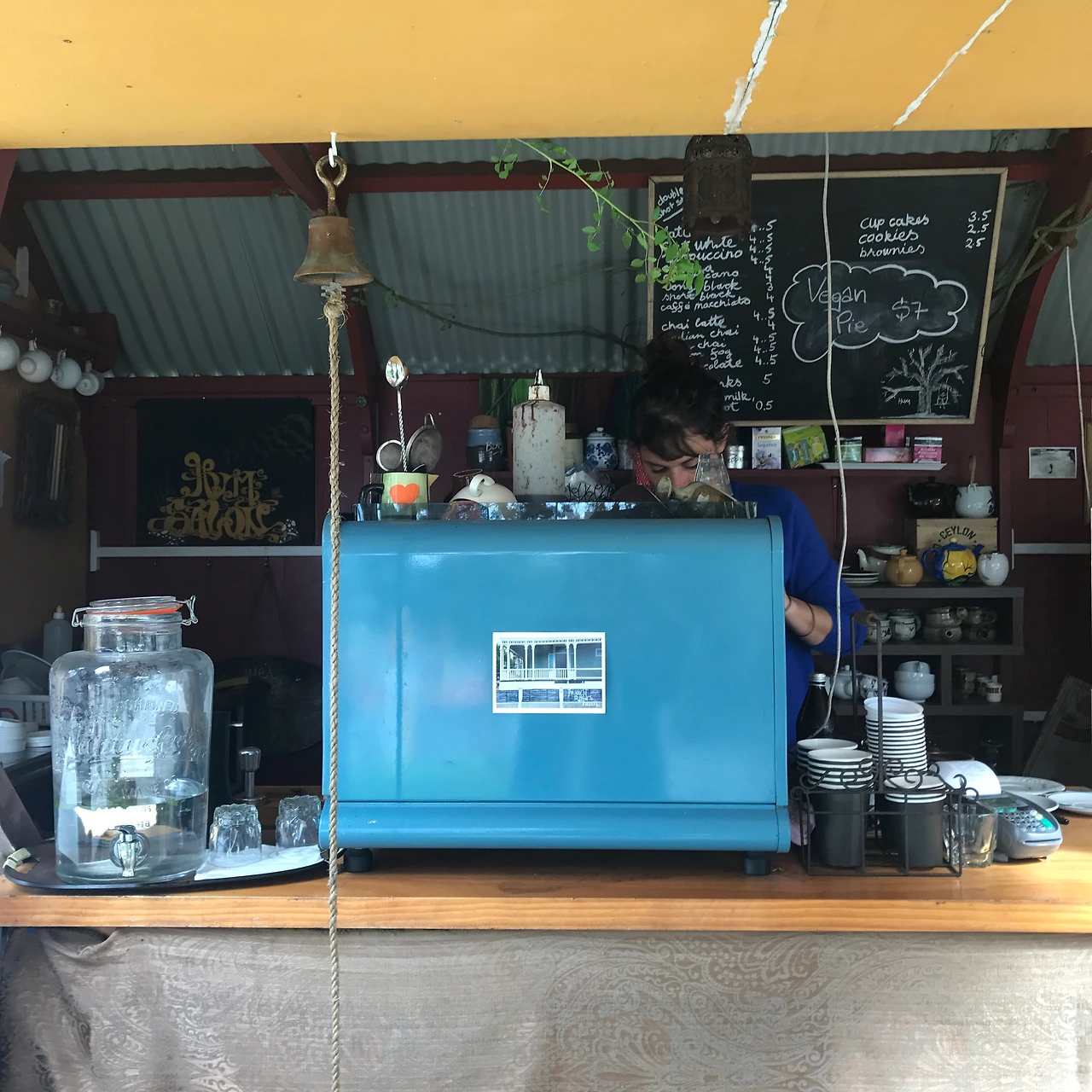 외부에 있는 작은 트럭 속에는 이렇게 사랑스러운 카페가 기다리고 있다. 단연, 이 곳에서 가장 반한 장면이었다. 이렇게 러블리한 베이비 블루 커피 머신이 한 몫했다.