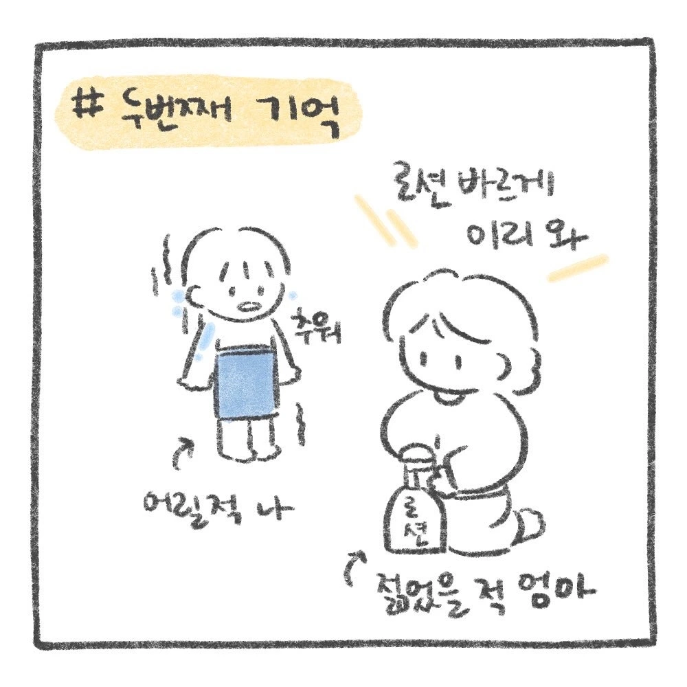 특히 추운 겨울날 엄마가 로션을 호오- 하고 불어 발라주던 기억은 그 당시에는 이해하지 못했지만 지금은 다 아는, 마음이 몽글몽글해지는 기억이다. 하루하루 나이가 들 수록 이런 사소하고 사적인 기억들을 먹고살게 된다.