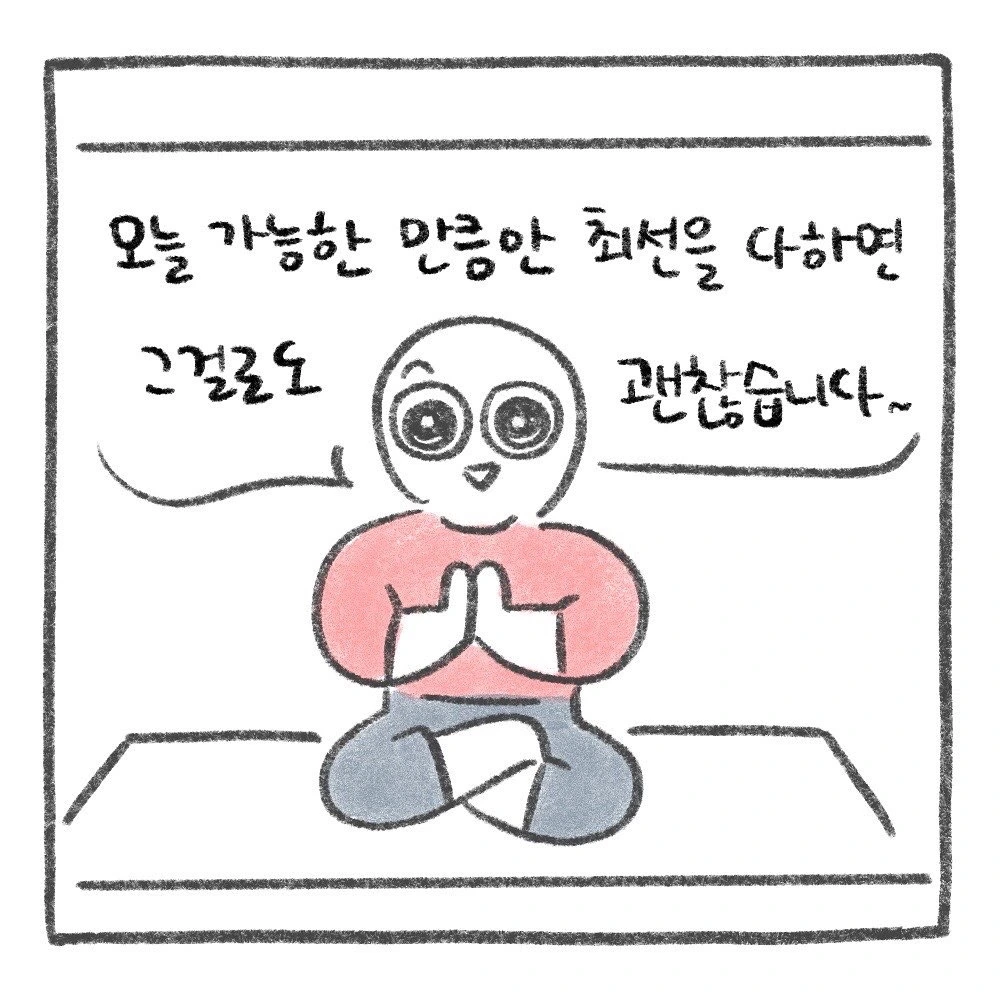 어느 날 우연히 본 요가 영상에서 흘러나온 선생님의 한마디. '요가는 유연성을 가리는 경쟁이 아니에요. 오늘 가능한 만큼 최선을 다 한다면 그걸로 충분합니다.'