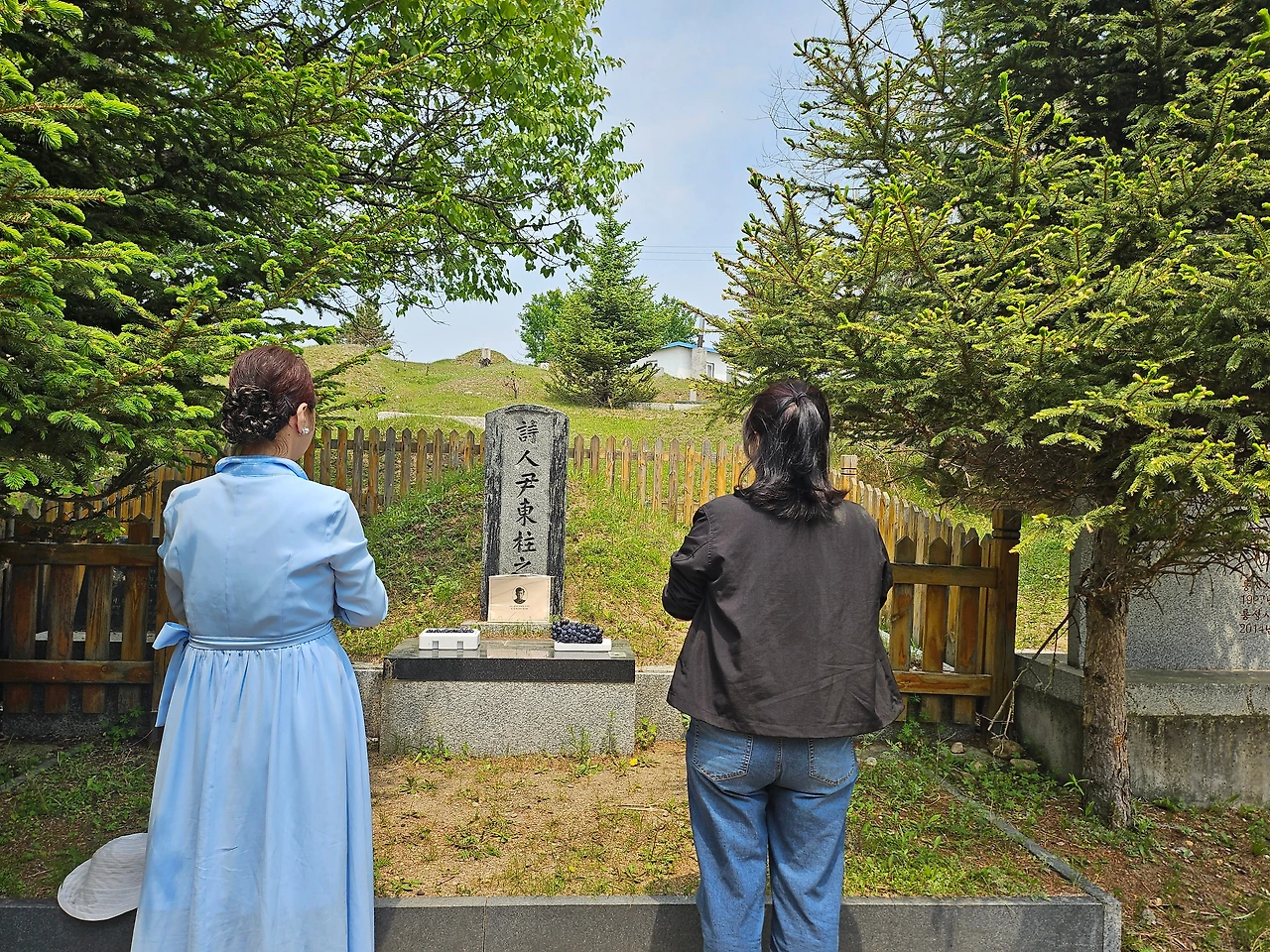 두 젊은이의 묘비에 가슴을 쓸어내렸고 그들의 희생으로 오늘의 한국도 건재함에 감사의 마음을 전하며 준비해 간 탁주와 포도로 잔을 올렸다 동행한 시인들과 낭송가들이 한 편의 시를 낭독하며 그들의 영혼을 위하여