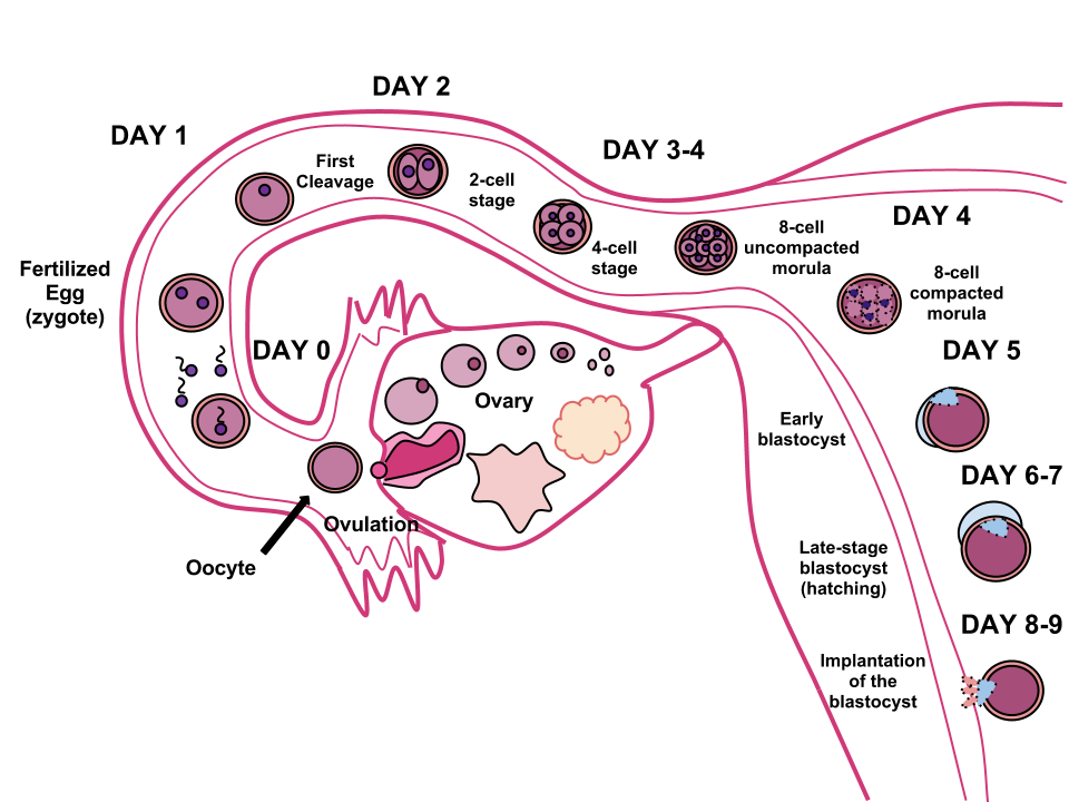 배란이 되면 정자와 난자가 만나고(수정), 수정란은 1주일 정도 나팔관이라는 구불한 관을 따라 움직여 자궁안에 안착하게 됩니다(착상).