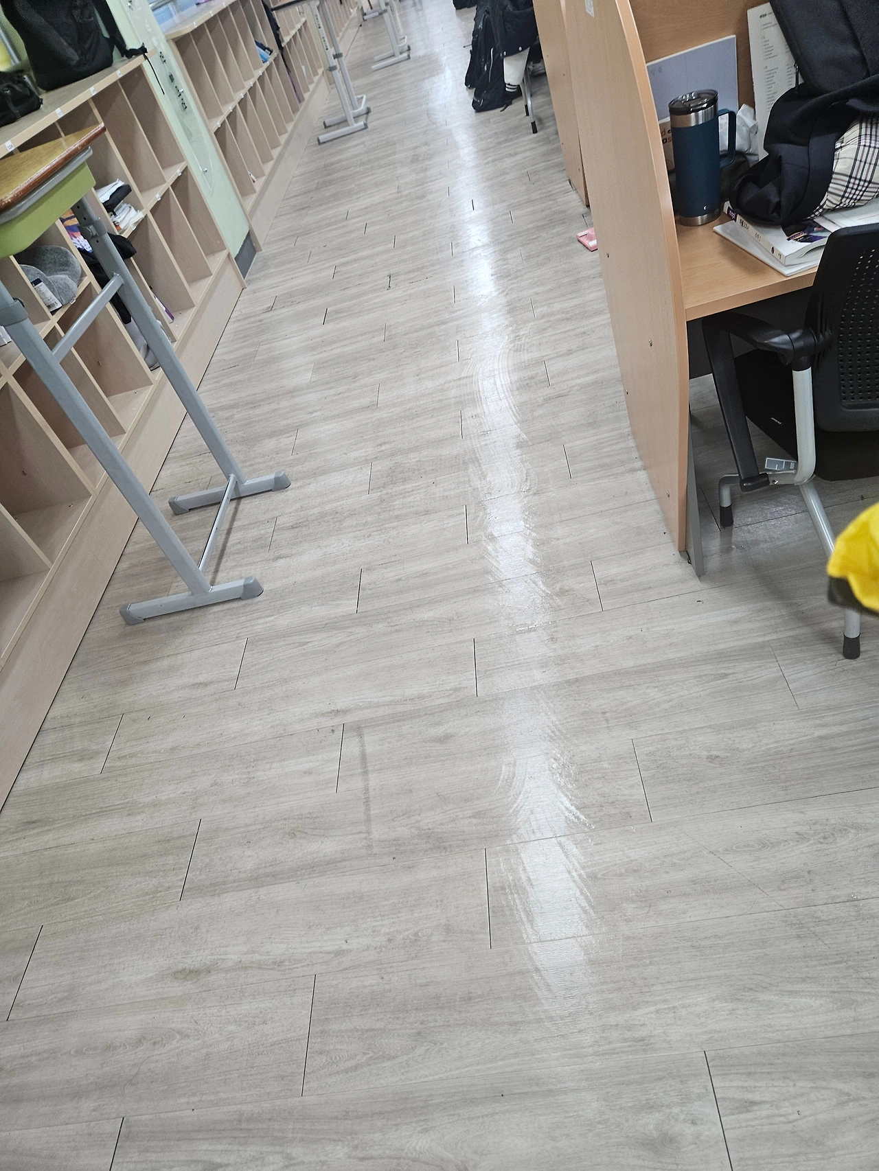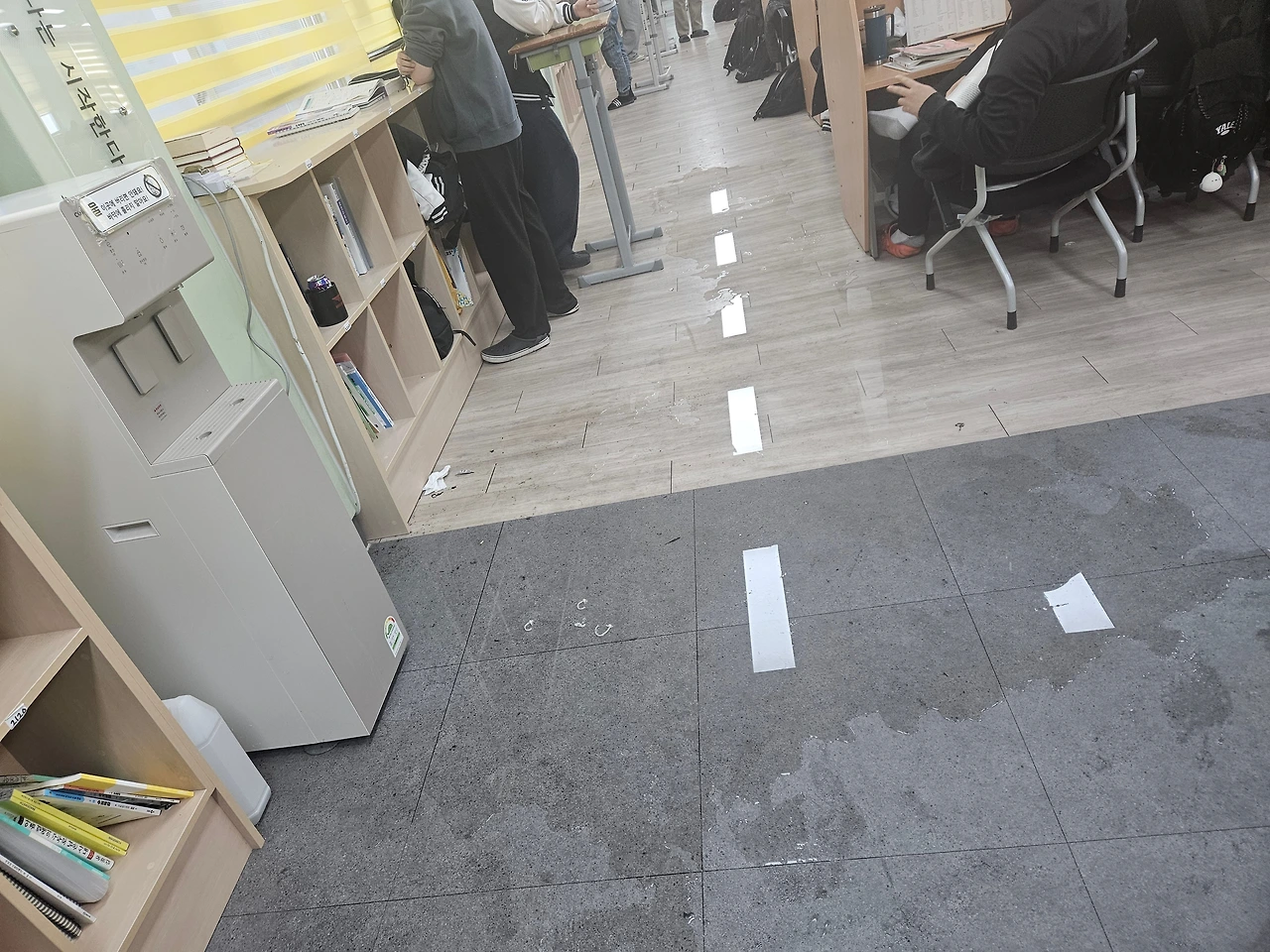 갑작스레 물바다가 되어서, 급하게 가져온 빈약한 청소도구로 물을 제거하고 있었는데