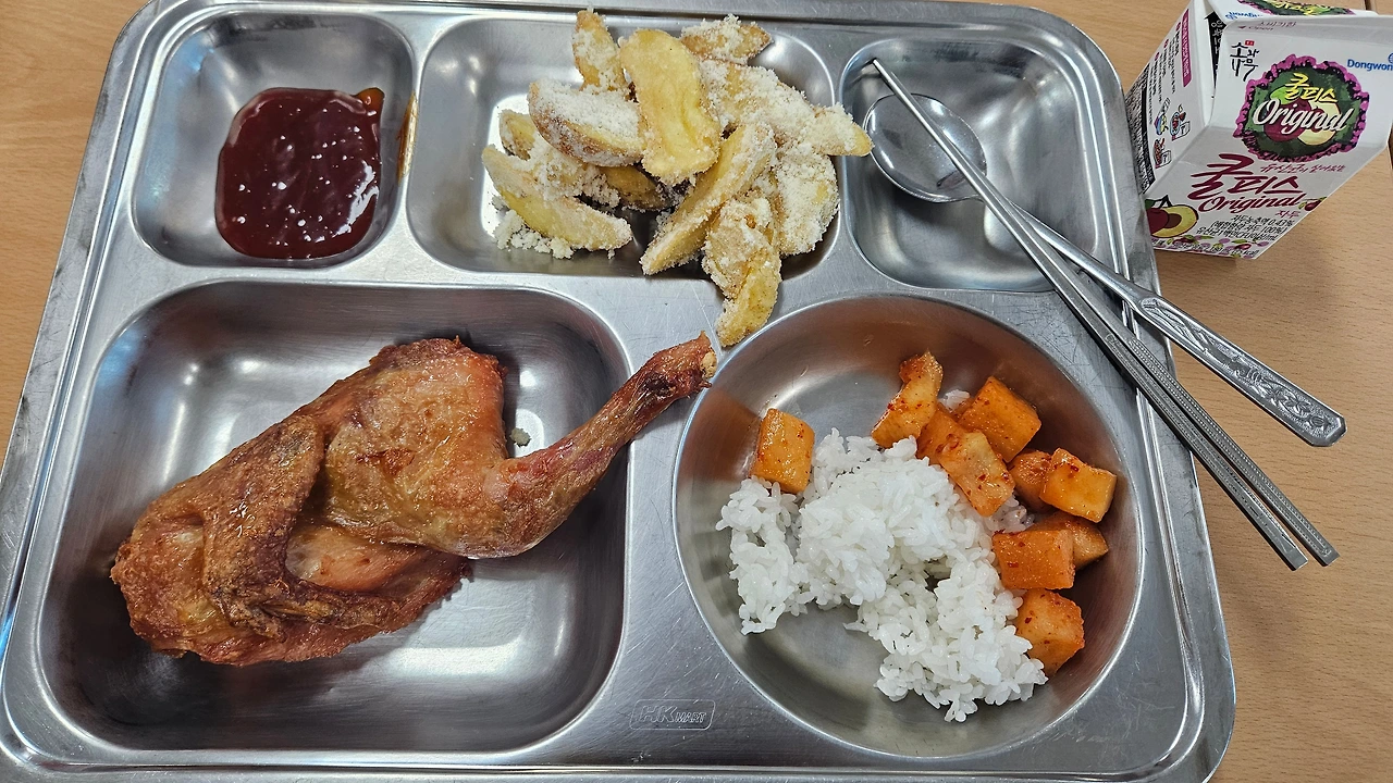 옛날통닭이 몇 번 급식에 나왔다.