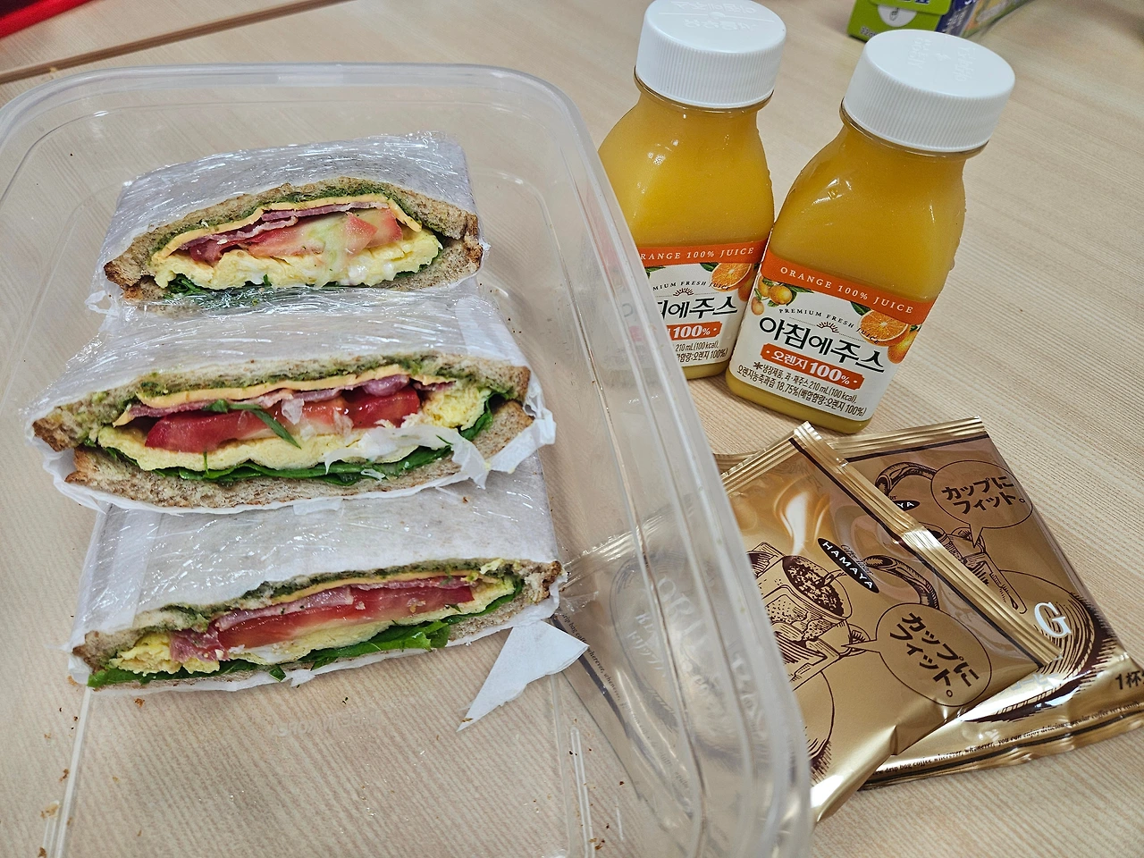 오늘 부장님께서 재료를 바리바리 싸오셔서 아침부터 샌드위치를 만들어주셨다. 엄청 맛있었다. 감사하다.