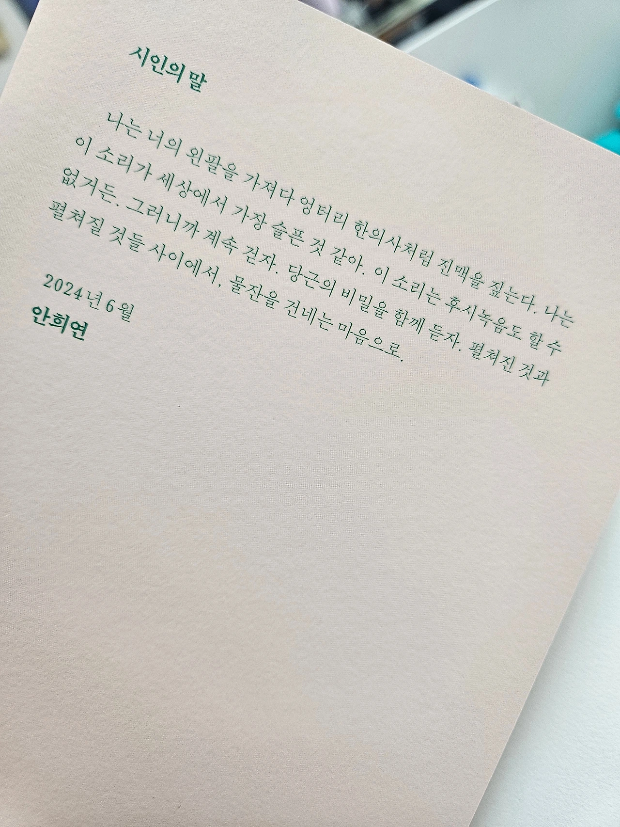 아침에 안희연 시인의 시집 '당근밭 걷기'를 폈다. 이번주 금요일에 시인님을 강연에서 만나게 되어서 그 전에 읽고자 한 건데
