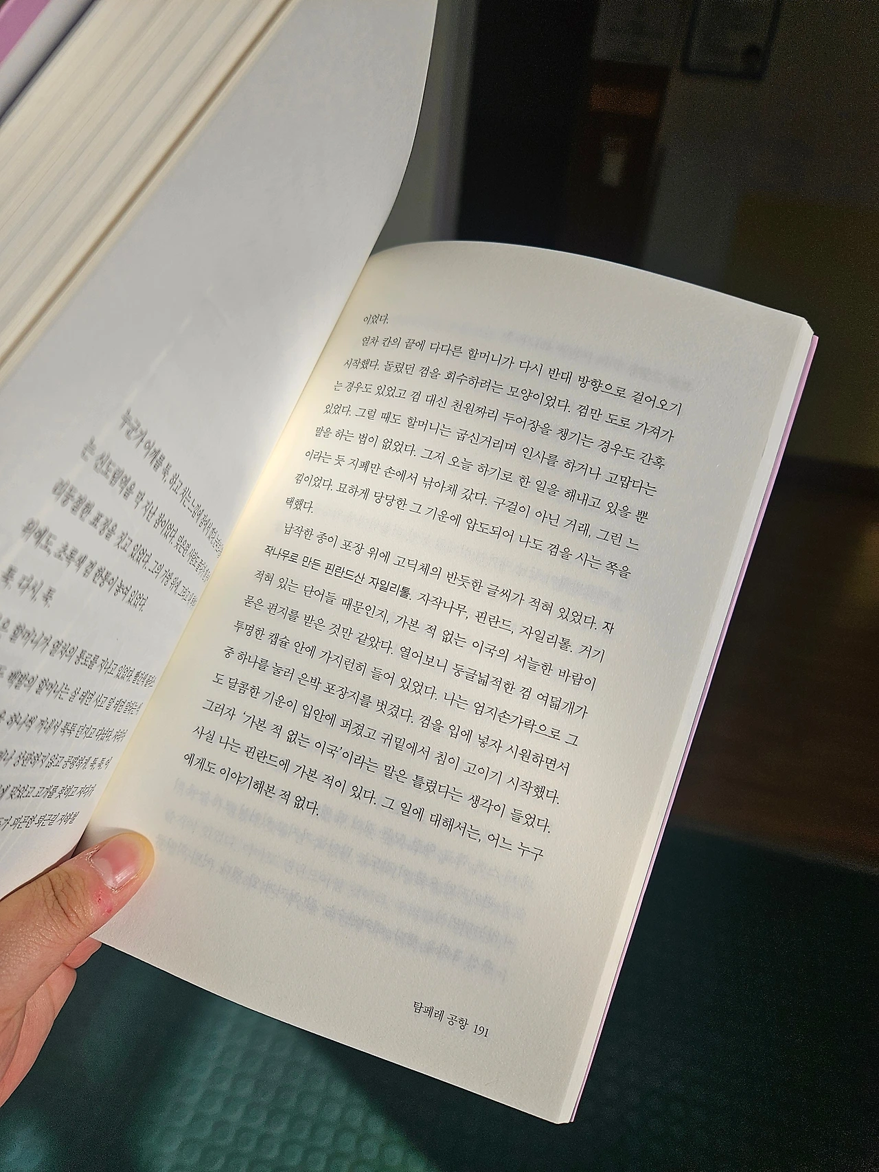 1시부터 5시까지는 학교에 가서 자습감독을 했다. 잠깐 책을 읽으며 윗층으로 올라가는데 책 위로 햇살과 그림자가 드리워지는 바로 그 순간이 무척 아름다웠다. 장류진 작가님의 '일의 기쁨과 슬픔' 맨 마지막에 있던 단편인 '탐페레 공항'을 읽었는데 결말에서 오열하고 말았다. 그냥..내게는... 울 수밖에 없는 결말이었다.